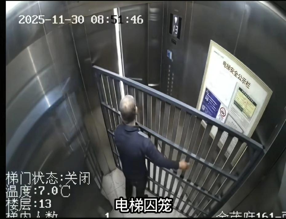 解释不清了!上海一大爷搬床架进电梯,按键成最远距离。网友说:大爷这是自制民间监狱! 一块床架斜着卡进电梯,把站在角落的大爷和操作面板隔成了世界上最遥远的距离,他眼睁睁看着楼层按钮却一根手指都够不着。 上海市西郊金茂府小区监控视频记录下这样一个画面:去年11月30日,一位大爷独自搬着一张床架进了电梯。 大爷被困电梯的13分钟,每一秒都被监控记录下来。大爷把床架搬进电梯后,发现这个家具以一种刁钻的角度卡住了轿厢。 床架被斜着放进轿厢,正好从对角线方向将狭小的空间一分为二。大爷被困在了电梯按键面板的对角位置,伸手怎么也够不到那些能带他离开的按钮。 他试图伸手去按楼层按钮,但床架形成的障碍让他连面板的边缘都碰不到。大爷在电梯里尝试移动位置,但床架和电梯壁形成的三角区域将他牢牢困住。 小区的智慧电梯系统在这个时候发挥了关键作用。系统监测到电梯轿厢内有人但电梯长时间不动,触发了自动报警程序。 智慧电梯系统立即向物业工程负责人发送了救援警报。收到报警后,物业马上安排距离最近的巡逻人员赶往现场。 巡逻人员赶到后,从外部将电梯调至1楼,大爷终于脱困。整个被困过程大约持续了13分钟。 床架的处理却成了新问题。由于摆放角度太过刁钻,即使在1楼,电梯门完全打开也无法将床架移出。 物业人员和大爷家人商量后,想出了一个巧妙的方法:家人在13楼按下电梯召唤按钮,电梯带着床架返回13楼后,床架“从哪来回哪去”,最终从原入口被移出电梯。 果然每次大神都在评论区,你们觉得呢?