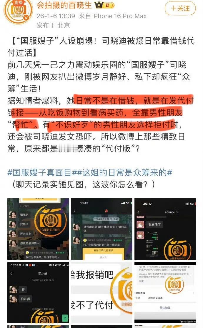 狗仔上司晓迪是捞女,一直在叫男性朋友“代付”。如果男性朋友拒付时,司晓迪就会发文恐吓。所以鹿晗,檀健次,范丞丞等…都被恐吓的吗?