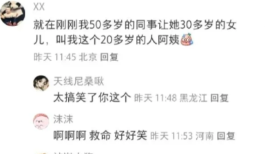 就在刚刚我50多岁的同事让她30多岁的女儿,叫我这个20多岁的人阿姨
