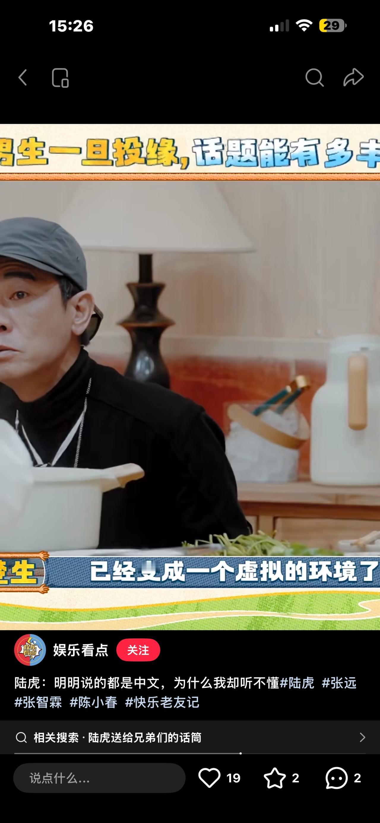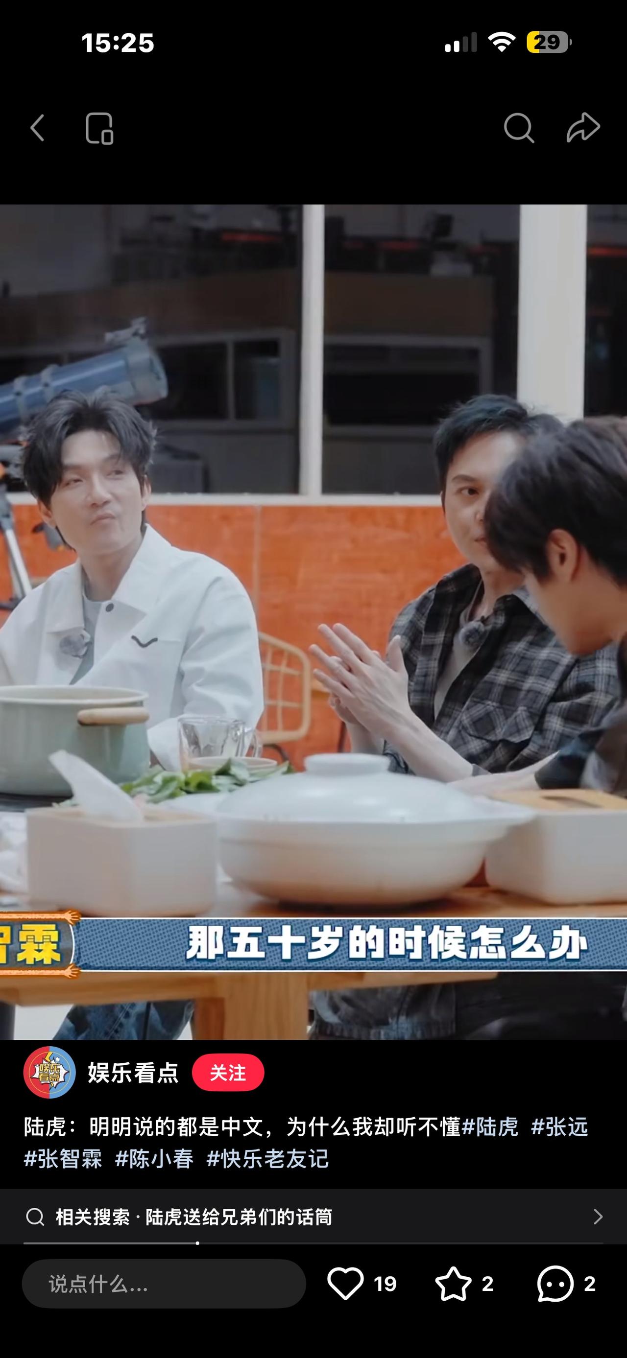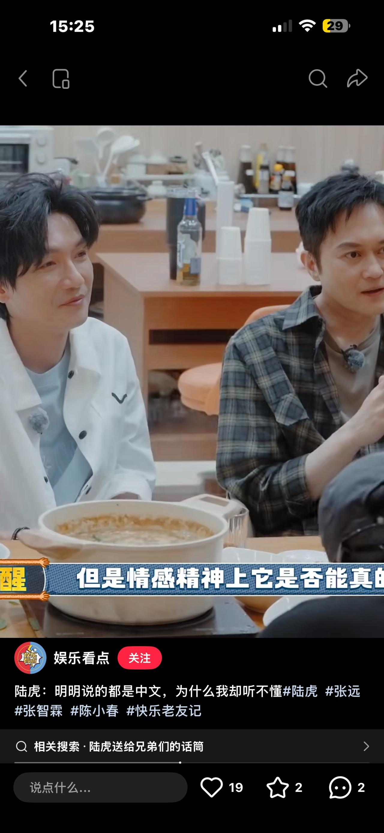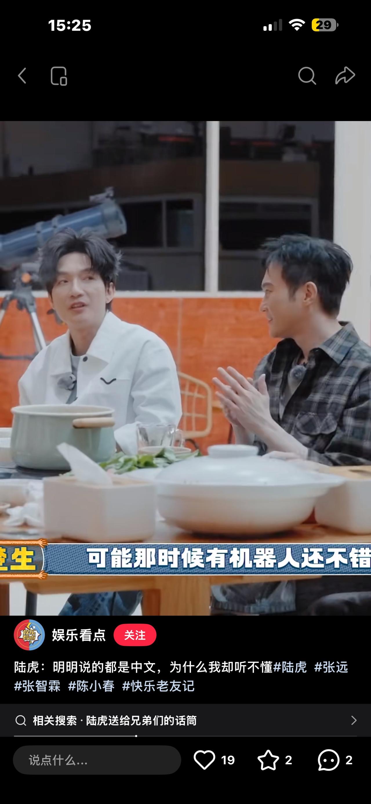 哥几个探讨多维世界,陆虎梦回“这猪蹄汤我要了! 太搞笑了。 智霖与春哥来老友记做客,吃饭时聊起了张远单身话题。 张远表示遇到合适的再作考虑,糊糊说他现在很自在,楚生也说他没负担,苏醒希望他顺其自然。 智霖突然问过了五十岁怎么办?楚生接话有机器人。苏醒表示机器人在情感方面🈶缺陷,楚生说在完善。 然后话题突然转向科技幻想、UFO以及二维和三维世界等等….。 陆虎突然听不懂了,刚才不是说张远单身的事吗?他愣头愣脑来了一句“鸡肉捞出来还有往里加的吗?”一下子梦回“这猪蹄汤我要了!”。