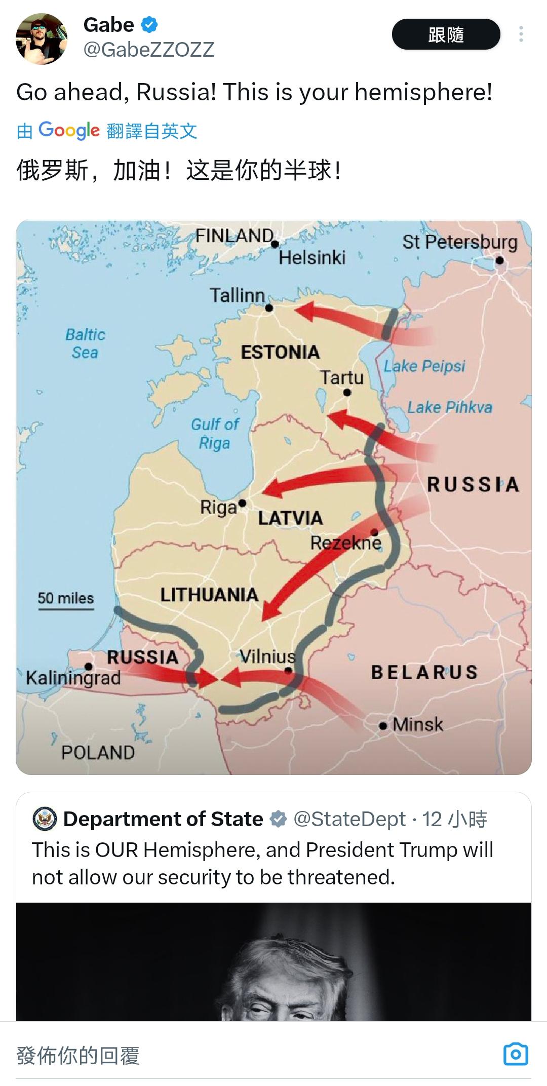 有样学样! 我要说的是:发推的不是俄罗斯人,所以不能代表俄罗斯的主观意图,尽管美国务院真是那样想的,也在准备这样做。 Source: X