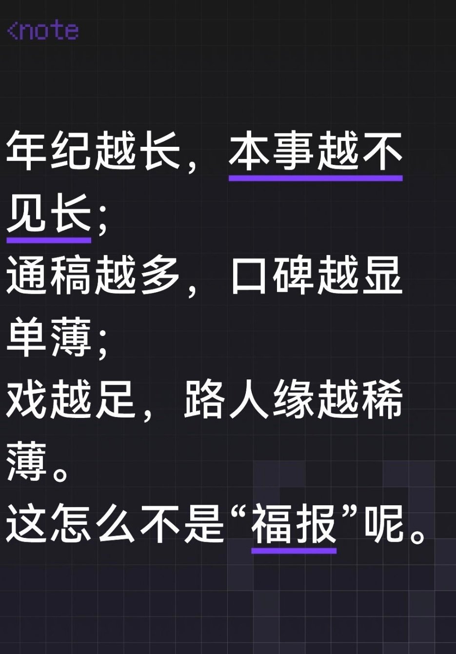 这几天()拼命撩架是因为正主的舞台、作品哪怕通稿铺遍全网,真实的路人反应却是:无人在意。大家要么不说话,要么连点开都嫌温。不管是舞台还是电影还是电视剧,几乎没有路人下场。作为内娱关门人,常年盯着🍉田打补丁、单边麦麸,靠吸王一博的血度日,没有人讨论的时候黑王一博就是最快的获取眼球的手段。快五十的人了,年纪越长,本事越不见长;通稿越多,口碑越显单薄;戏越足,路人缘越稀薄。这怎么不是“福报”呢。