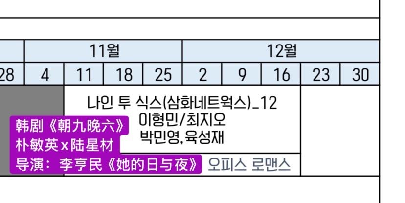 韩剧朝九晚六 朴敏英x陆星材合作SBS水木剧朝九晚六 OMG,我喜欢,这个组合好,办公室罗曼史~! 剧情:讲述了一个沉迷于工作而推迟恋爱的女人遇到细腻温暖的男人后感受到工作以及对爱情的变化和成长。 还有和我们普通人没什么不同的各种人物的生活朴敏英在剧中饰演汽车公司法务组组长姜伊智。 由于工作狂,结婚的优先顺序早已被推迟,虽然不是非婚主义,但她认为感情游戏--恋爱、结婚最终只是荷尔蒙的作用。 比起对不合理的事情鲁莽的反抗,她更注重于默默的诚实,是现实性的理性所有者。陆星材将饰演法学院出身的珠宝设计师韩善宇。 料理、设计等凡是动手类的事情都十分擅长。 他凡事从容,性格比实际年龄更为成熟通透。 为了女主,他总是行动先于头脑,堪称如今女性心中最想要恋爱的理想男人