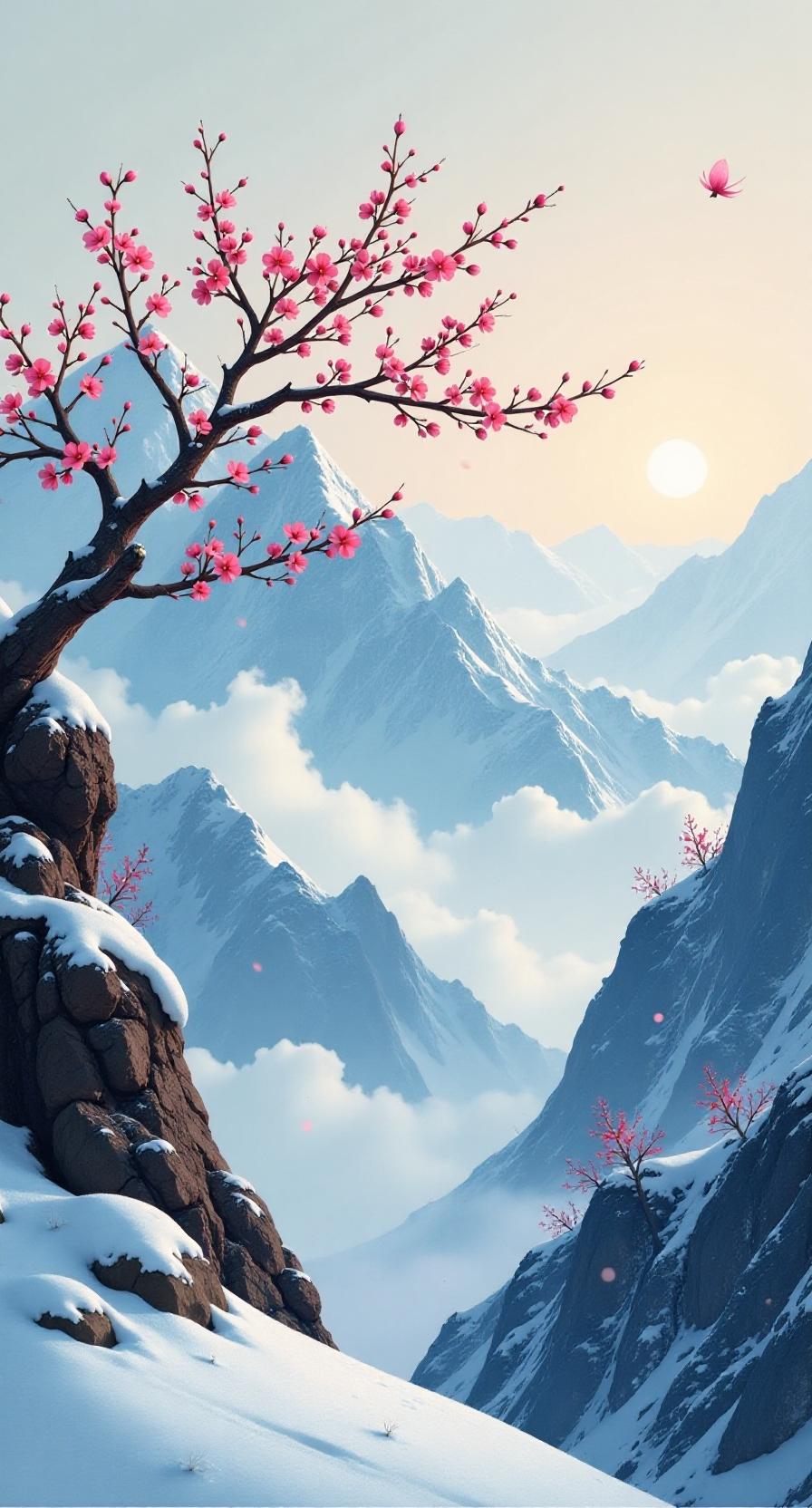 《七绝·踏雪寻梅》 梅雪飘香迎春到, 孤傲傲立雪中娇。 寒梅不畏严冬冷, 傲骨精神映日耀。 七绝 梅花 坚韧 冬日美景