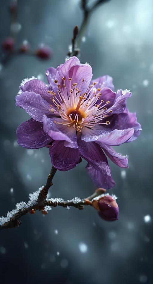 《寒梅迎雪》 寒梅傲雪映青空, 冷雨轻声润素胸。 孤灯寂寞夜难眠, 心似梅花待春