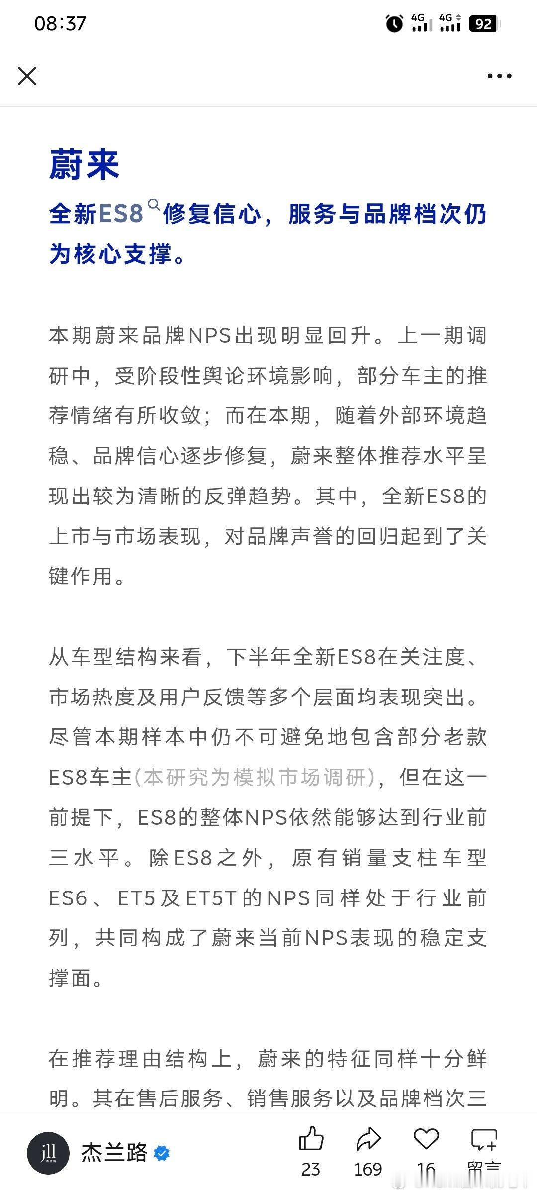 萤火虫NPS第三,蔚来NPS第四,乐道第八,虫子真的太让人惊喜了,年初还在喷“信息茧房”,年末的时候NPS第三,所以到底谁在信息茧房中?蔚来汽车