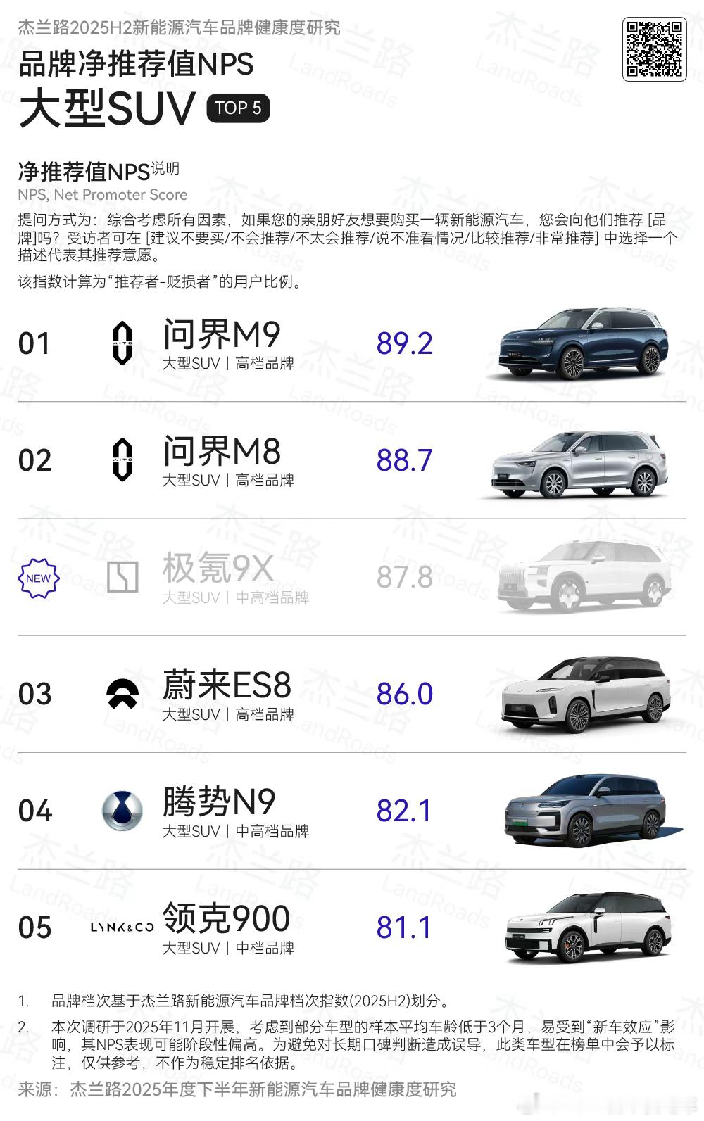 ES8在大型SUV的NPS排名第三