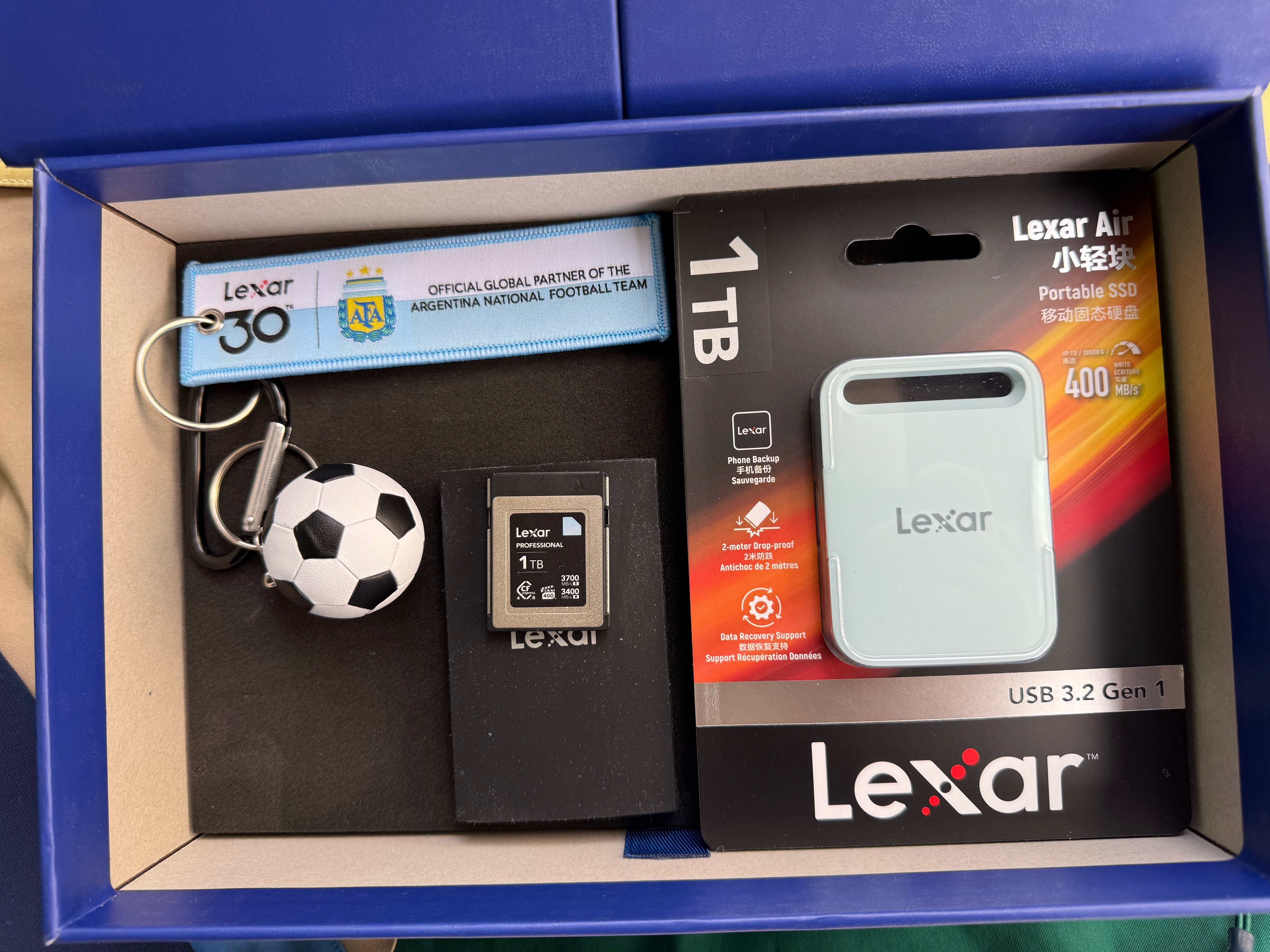 🔥燃炸!冠军之选!雷克沙 官宣牵手阿根廷国家队—— 官方全球合作伙伴⚽️🦅30年品牌积淀,辉映蓝白传奇!收到Lexar雷克沙品牌诚意满满的圣诞和新年礼物:1. 雷克沙30周年和阿根廷足球队联名礼品包(包括有足球钥匙扣和1T固态硬盘)2. 雷克沙4T固态硬盘3. 雷克沙1T CFexpress储存卡4. 咖啡豆感谢来自美国加州的Lexar雷克沙品牌!期待2026定格更多网球和体育的高光时刻,也记录沿途的美好瞬间。另,官宣海报还有足球偶像梅西的帅气照片,今年世界杯期待阿根廷的精彩表现哦!雷克沙足球网球