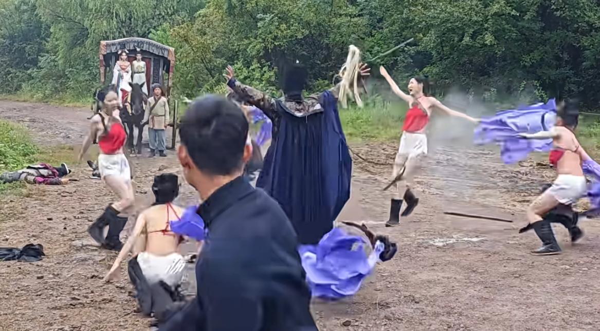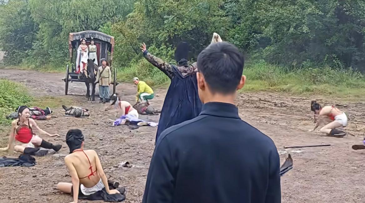 短剧拍摄现场,来看看武林高手是如何一掌打飞所有人的[允悲]