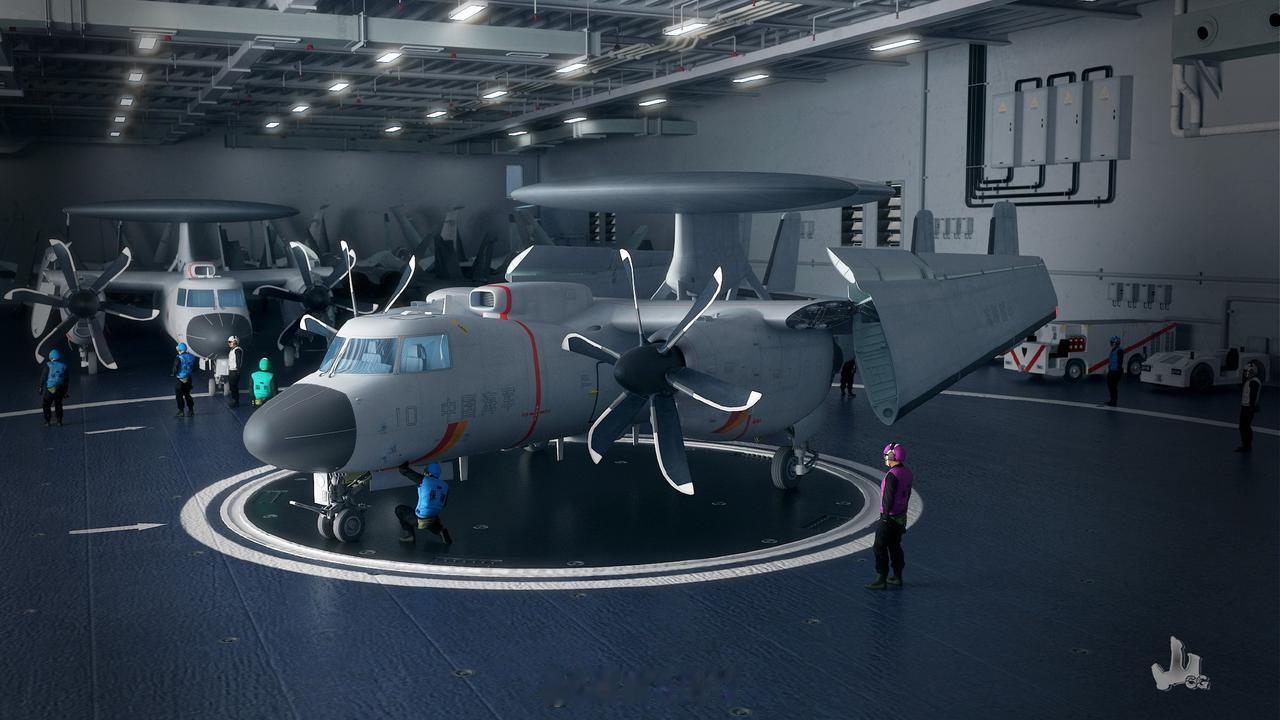 感谢大牛神作,转发高山的CG作品,空警-600停放在福建号航母的机库中,主机翼已经收起,停放在机库门口的转台上。整个CG作品细节完美,足以乱真。 另:高山最早印象深刻的作品,就是当年的歼-12重型鸭翼隐身战机,和181号驱逐舰一样印响深刻,在2000年左右是流传最广的CG。