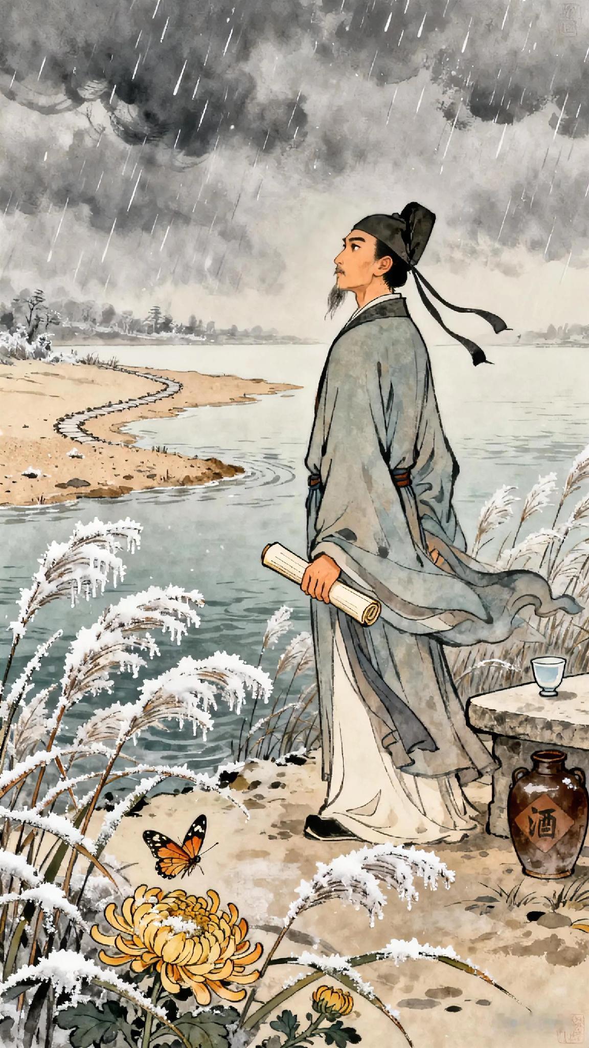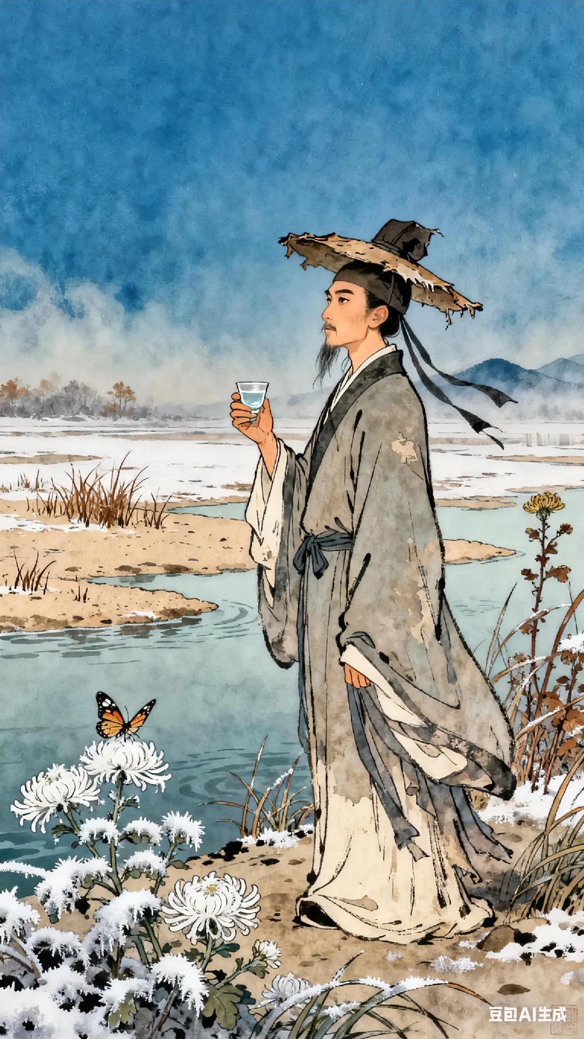 《南乡子》宋、苏轼。 霜降水痕收, 浅碧鳞鳞露远洲。 酒力渐消风力软, 飕飕, 破帽多情却恋头。 佳节若为酬, 但把清尊断送秋。 万事到头都是梦, 休休, 明日黄花蝶也愁。 译文: 苏轼立于江畔,见寒霜渐凝,江水退去,露出浅滩与沙洲。 酒意微散,凉风轻拂,那顶破旧帽子仍多情地留在头上。 重阳佳节,唯以清酒祭奠逝去的秋光。 他叹道:人间万事终如幻梦,罢了!连明日残菊上的蝴蝶,也将为凋零发愁。 苏轼 苏轼诗词赏析 苏轼诗词 天天古诗词 你记得最深的一首古诗词是什么 你最喜欢的一句古诗词是什么