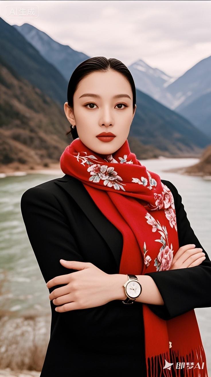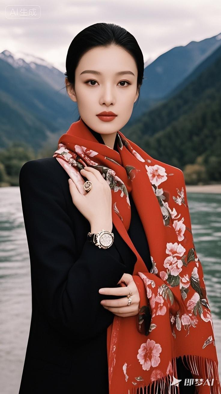古韵今风,花间美人,红衣飘逸,春意盎然。