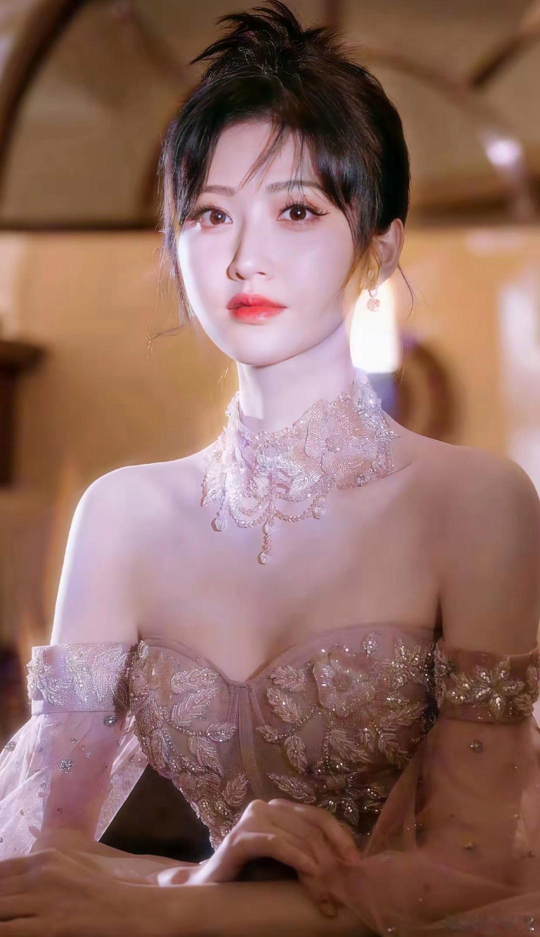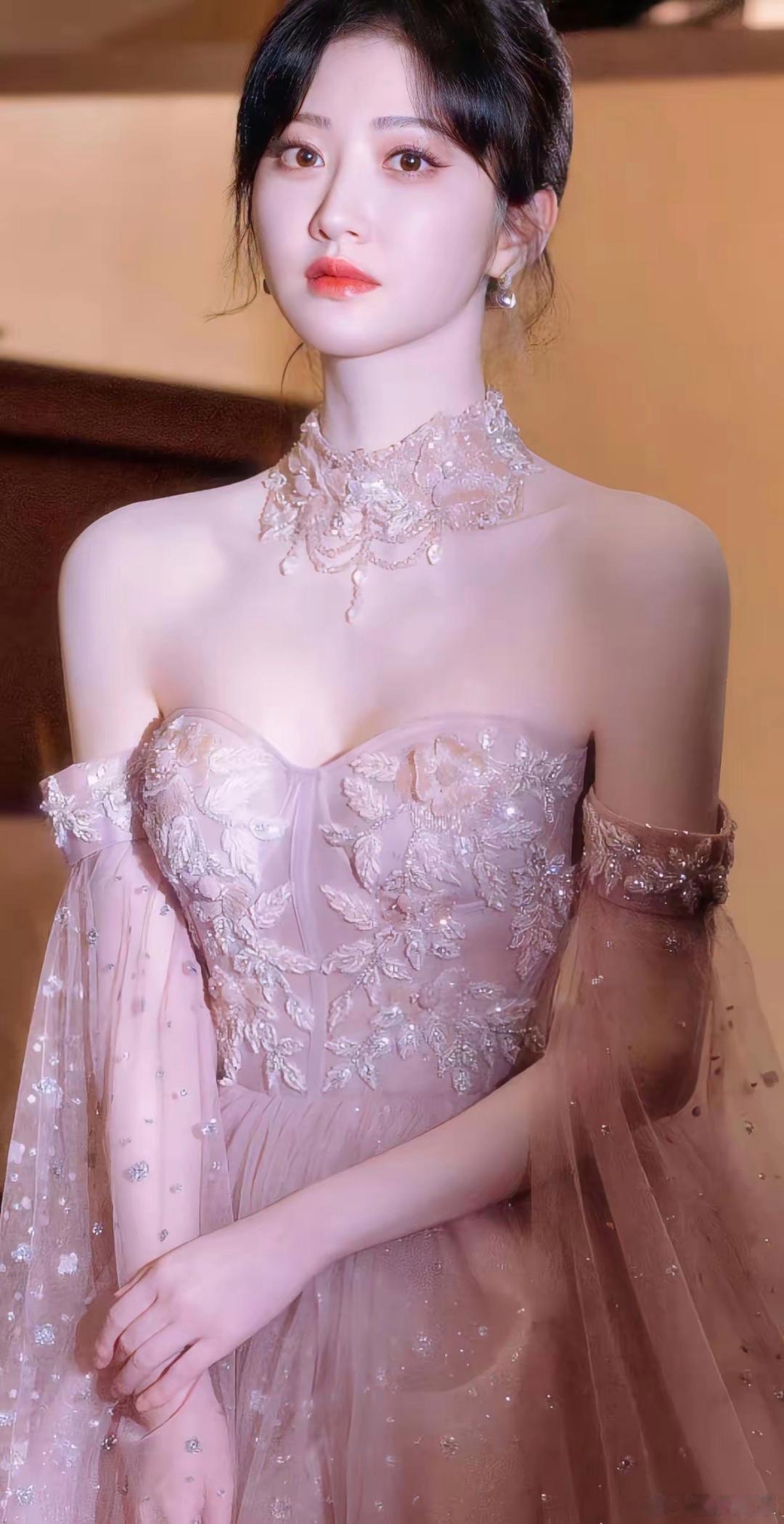景甜一袭粉钻礼服长裙太惊艳!搭配气质丸子头,美得就像从城堡里走出来的公主~
