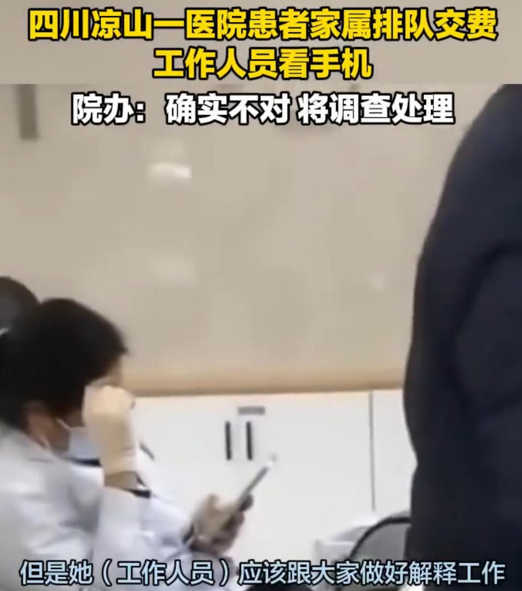 四川甘洛县人民医院 通报了收费员上班玩手机 当事人被严肃批评、待岗处理 事发1月5日,该医院收费窗口多人排队待缴费,当时的收费员却在刷手机,被人拍了视频,质疑上班期间摸鱼。 对此医院回应说,当时网络故障,收费员正在联系维修人员,同时向排队的靠前的人员解释了。 也调了监控证实那时间点,收费员确实在内部群里发了消息。可今天1月6日就出了这个通报,这算啥,变相承认了? 通报中清楚写了“上班期间不当行为”,医务人员空闲的时候刷下手机不为过,那么多人排队,仍在刷手机就过分了。 之前有个医生看心电图,有患者举报说医生炒股,正常来说,员工基本培训肯定培训过,不可能明目张胆放着缴费那多人不管,自己玩手机的。 现在很多单位(包括医院)都会有N个工作群,上级经常在群里指挥,员工都不得不经常刷手机,这个也是事实。 那么问题来了,一个上班玩手机不作为的行为,还要成立专班调查,等待专班调查结果,未免有点小题大做了! 医院回应工作人员上班刷手机 医院就诊吐槽