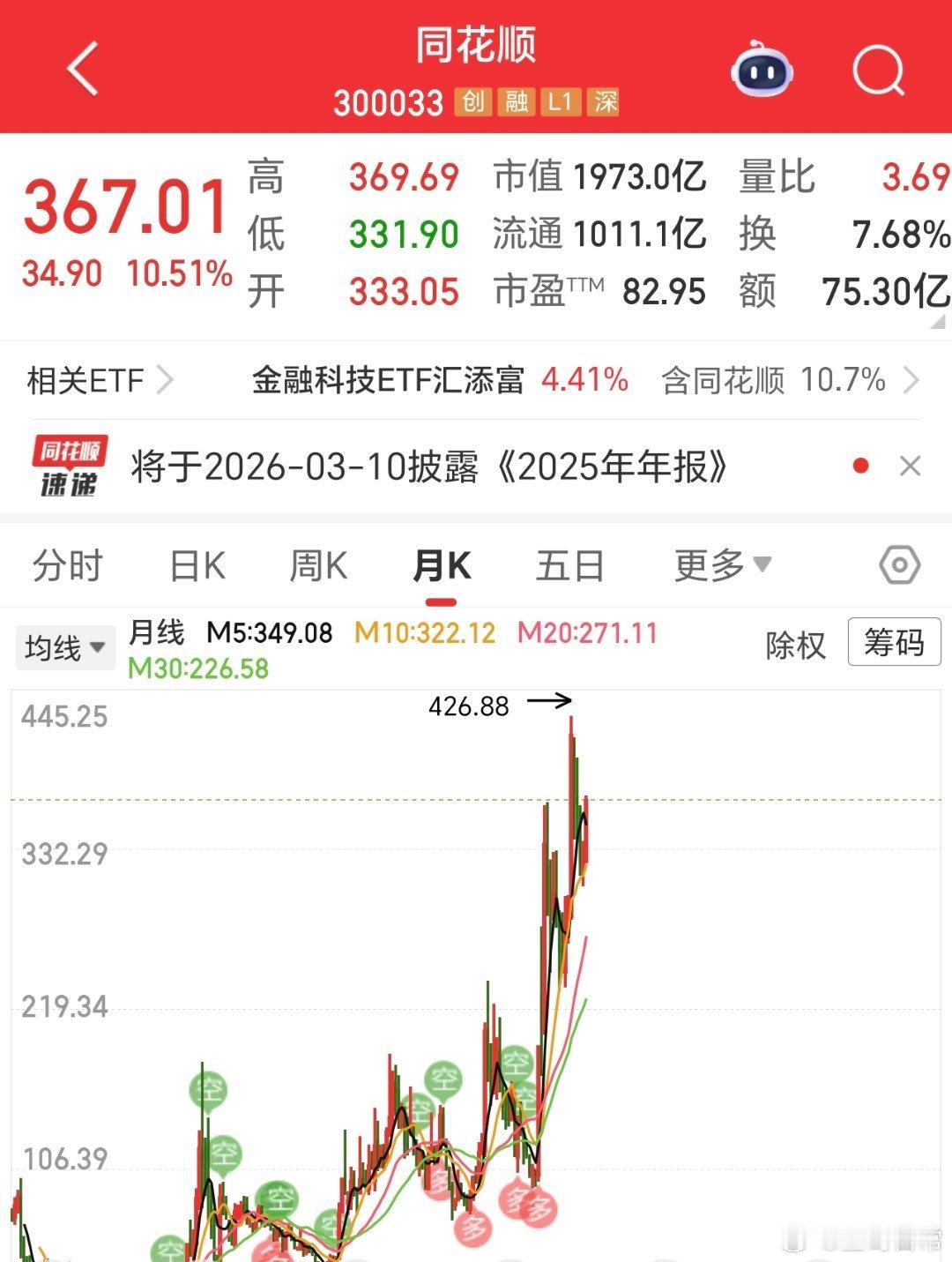 A股的高潮,估计不会太久,就要出现了。同花顺涨超10%,随时要创新高的节奏。这是很强的信号,估计3月到5月区间,会有一波非常精彩的行情。目前期市依然激烈,但高潮终究要结束,资金必然要回归的。