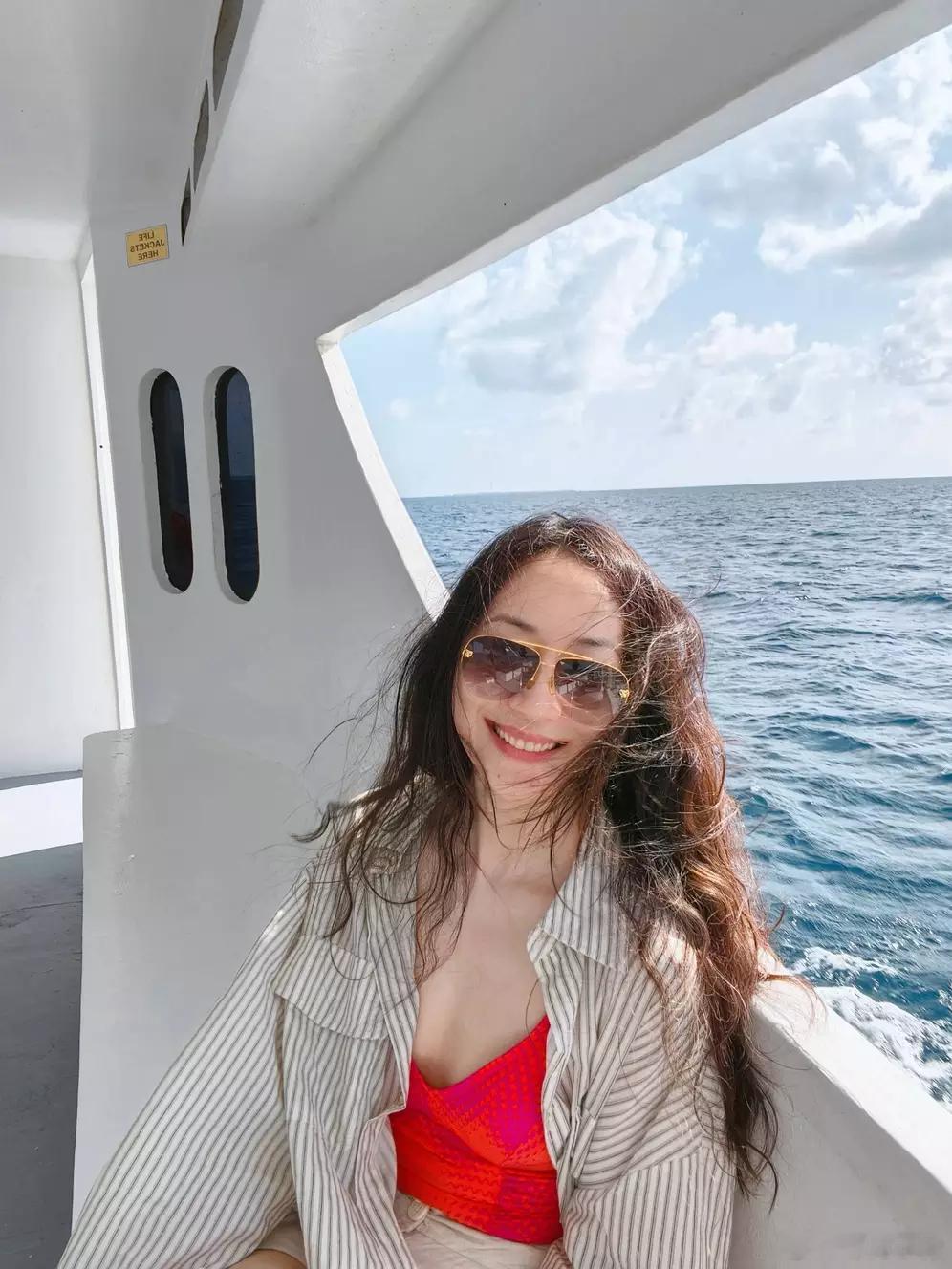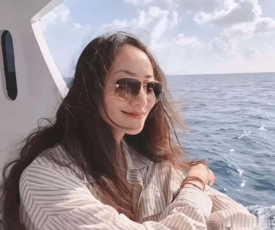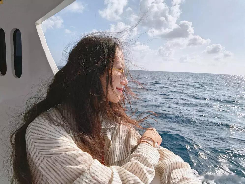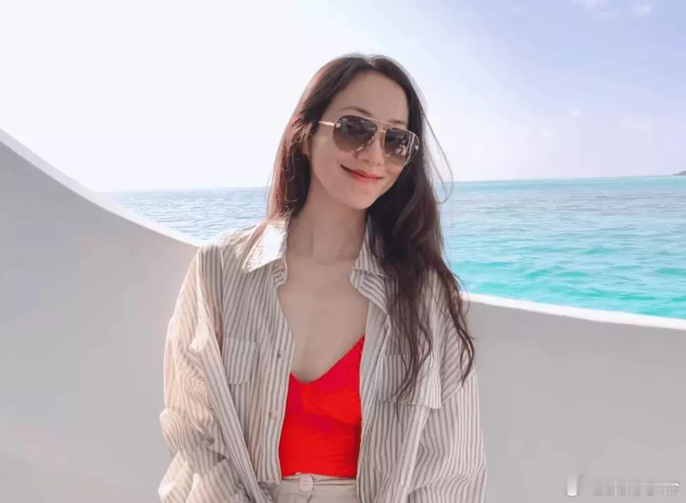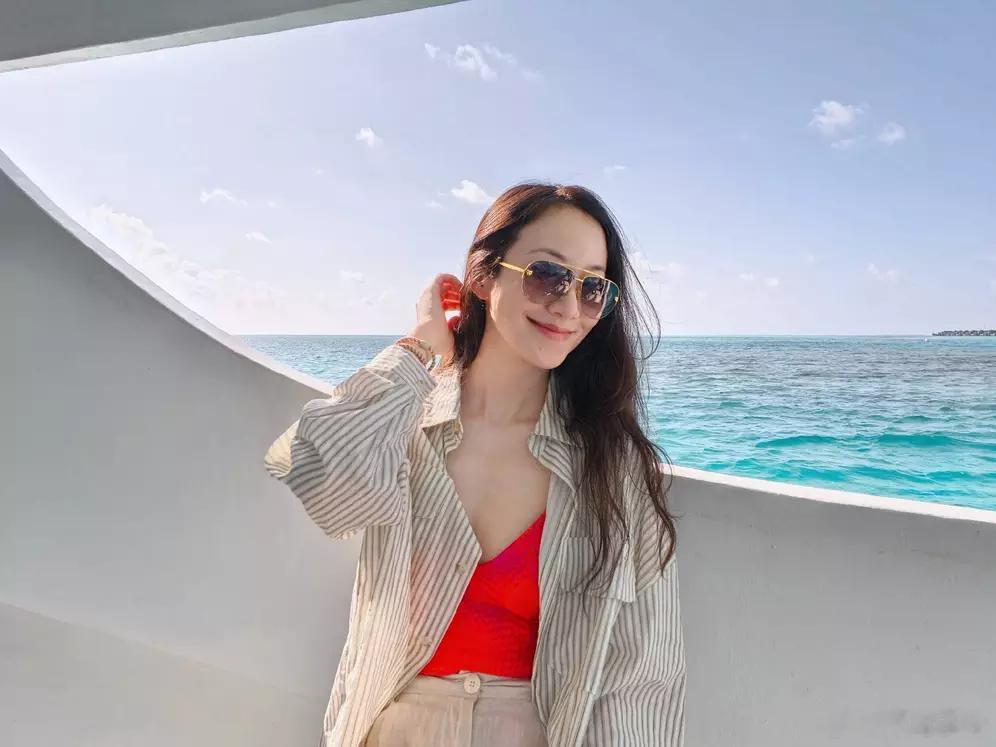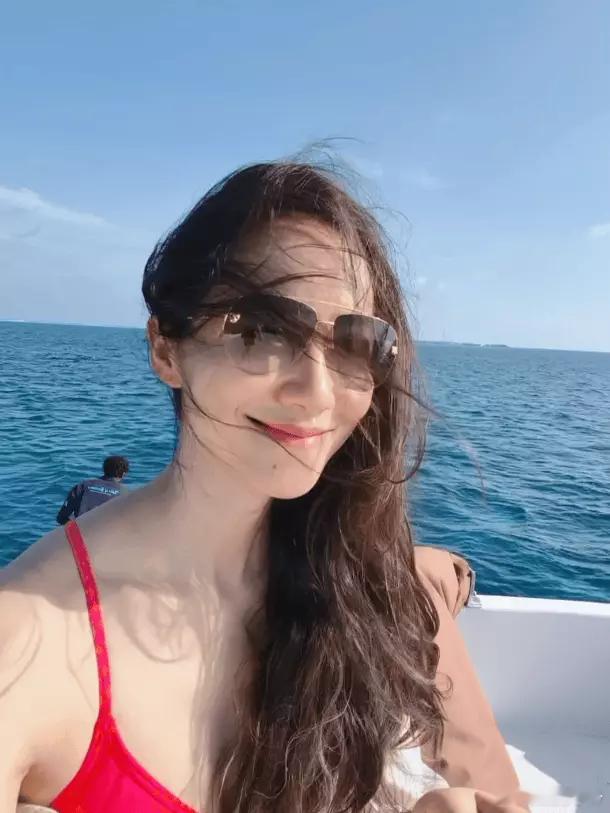 分享娱乐韩雪乘坐游艇出海心情好!穿红色小吊带明艳吸睛