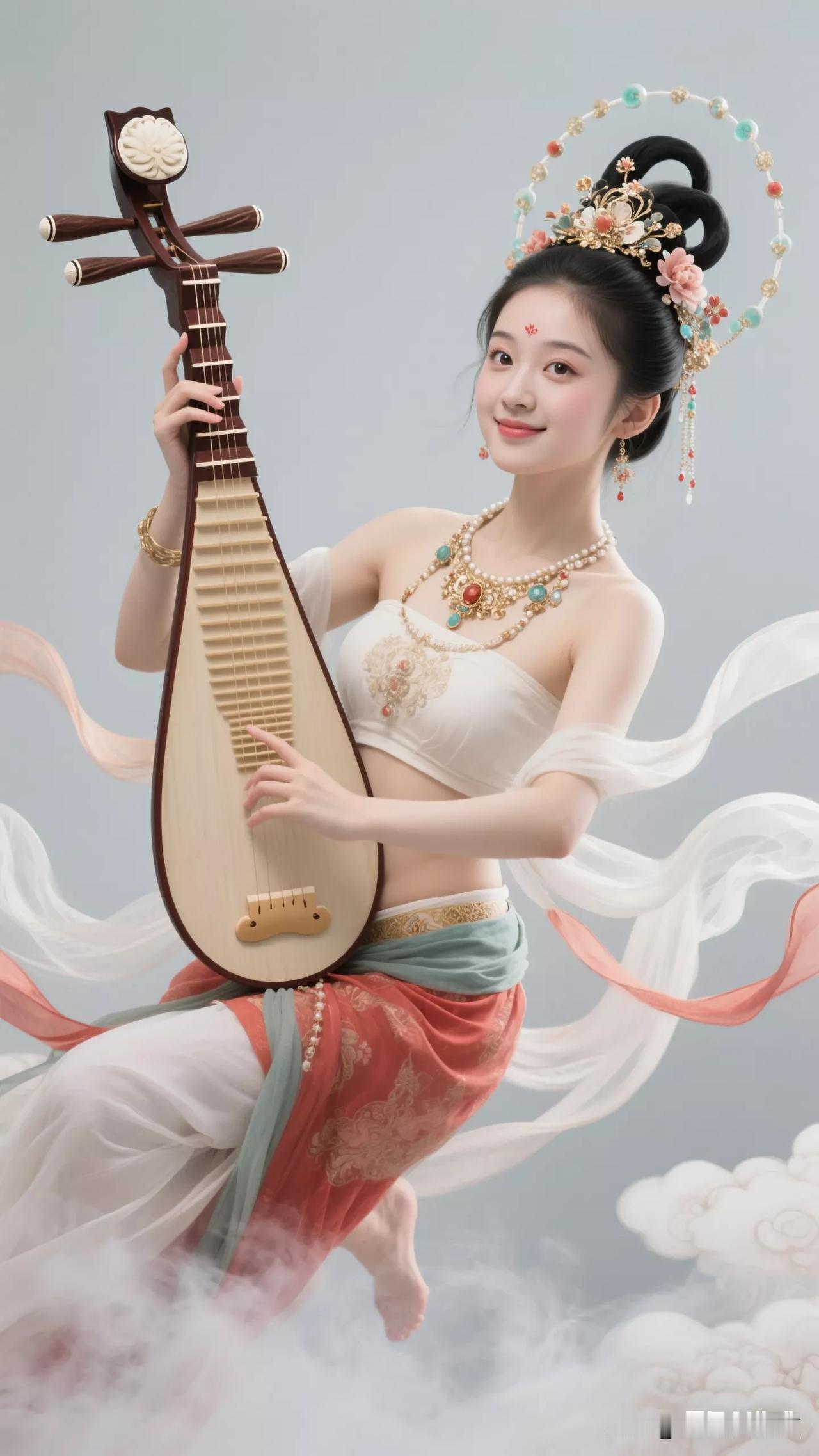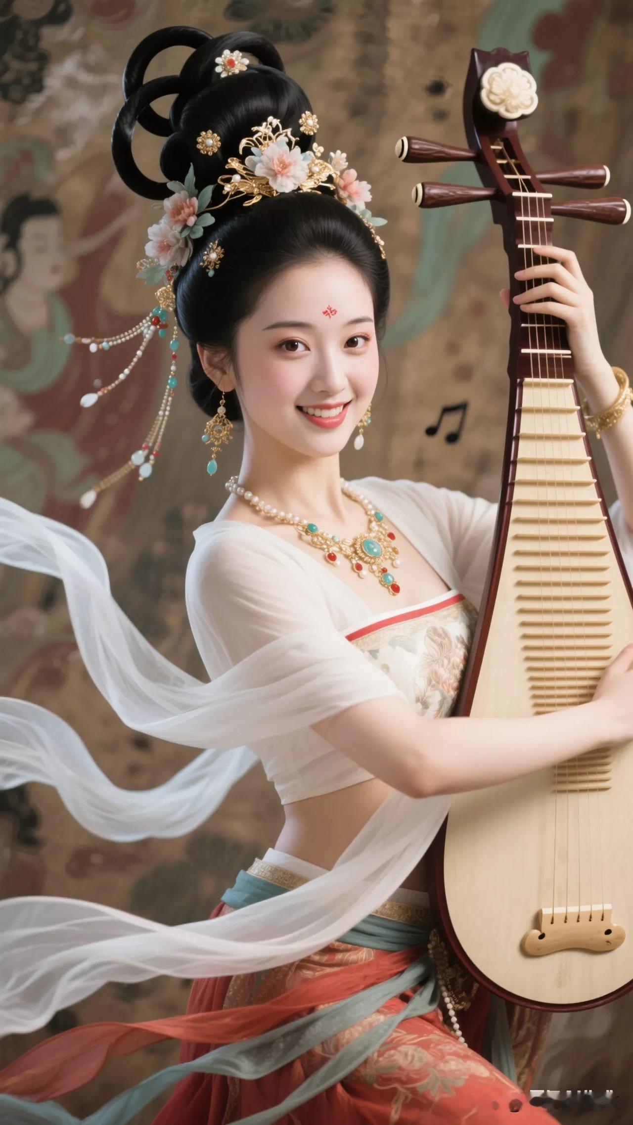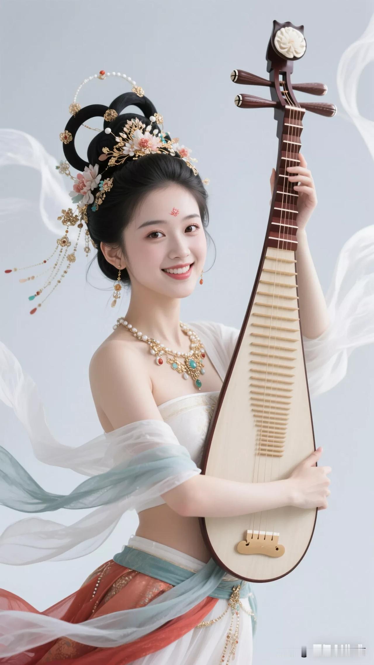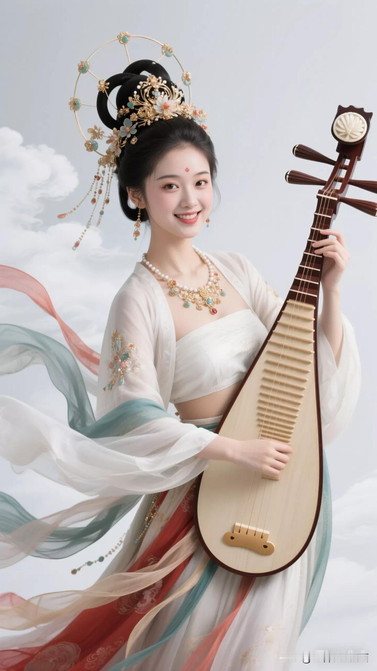 古风美人弹奏琵琶,古典韵味十足张立启原创书画AI作品古仕女发髻服饰集锦首发第67