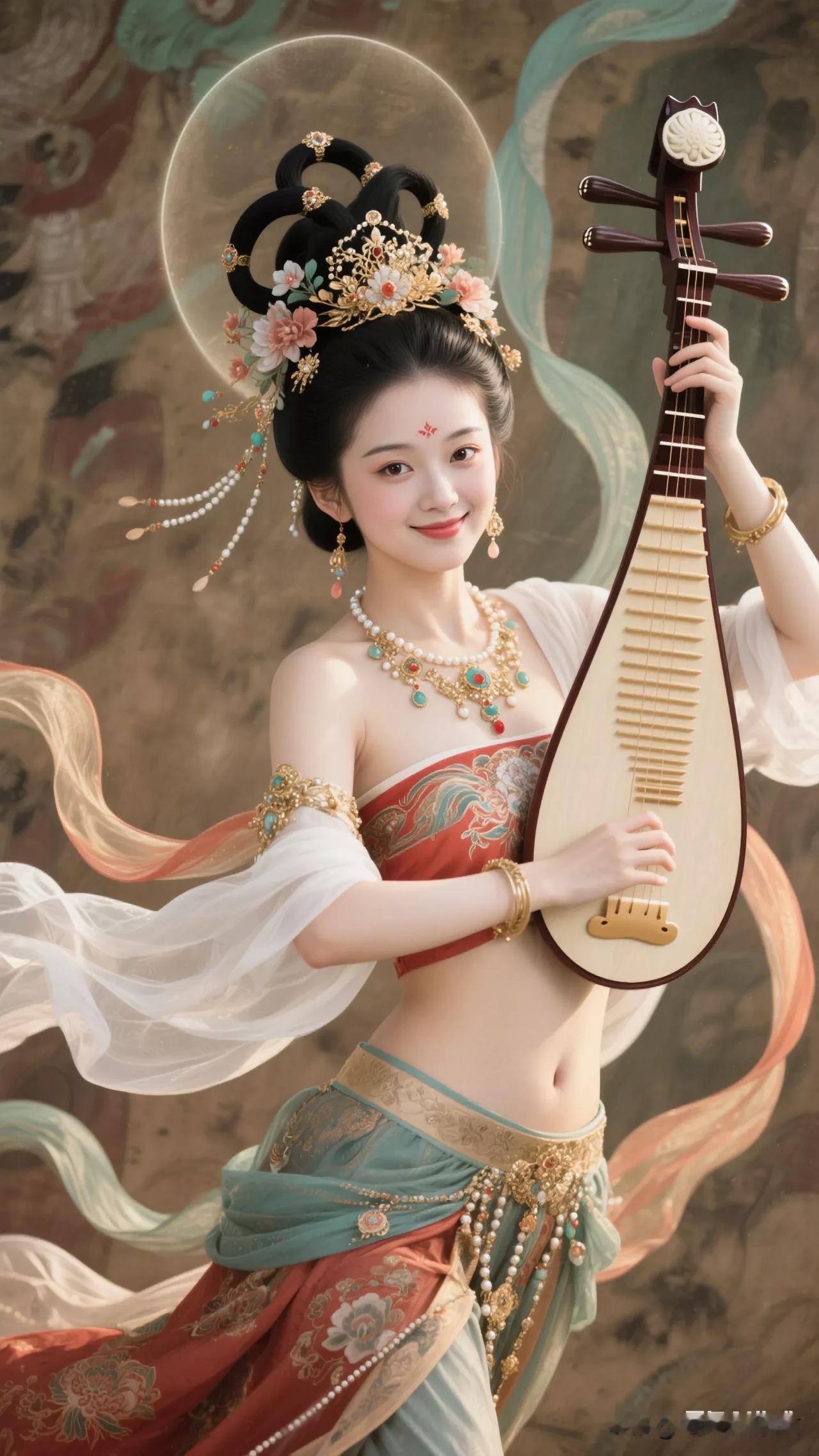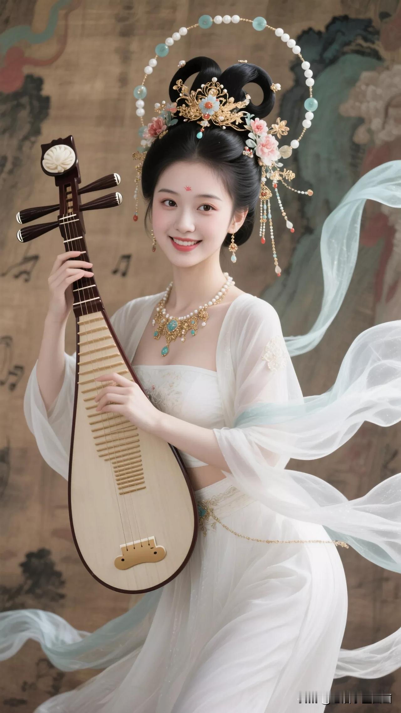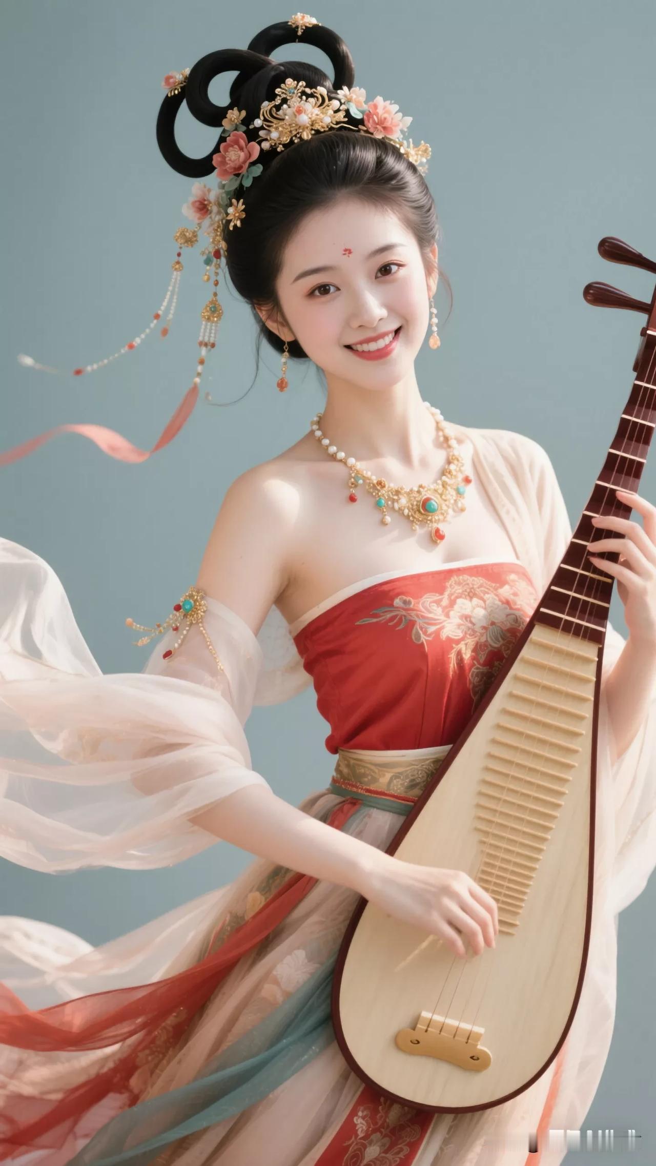 古风美人弹奏琵琶,古典韵味十足张立启原创书画AI作品古仕女发髻服饰集锦首发第67