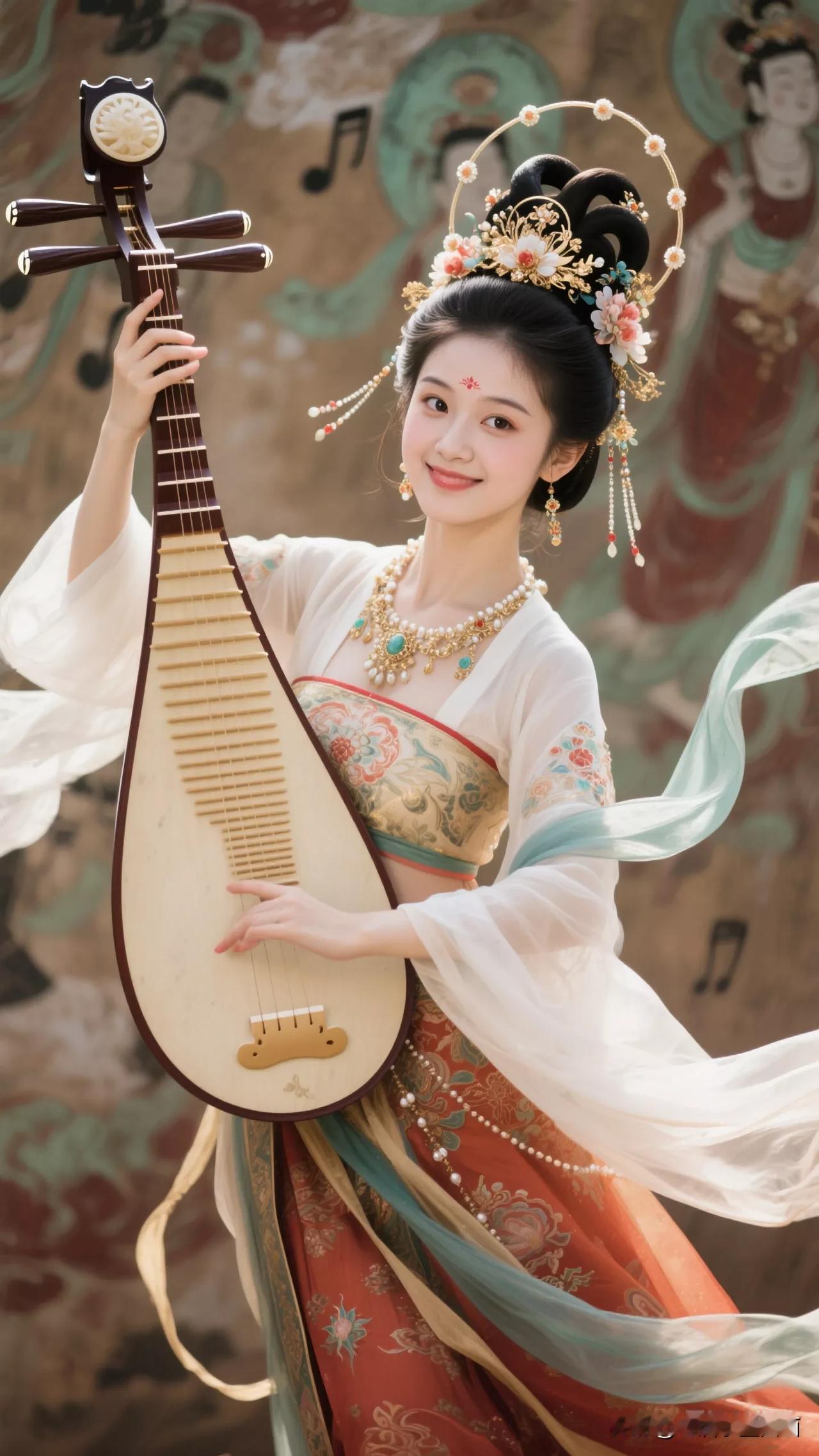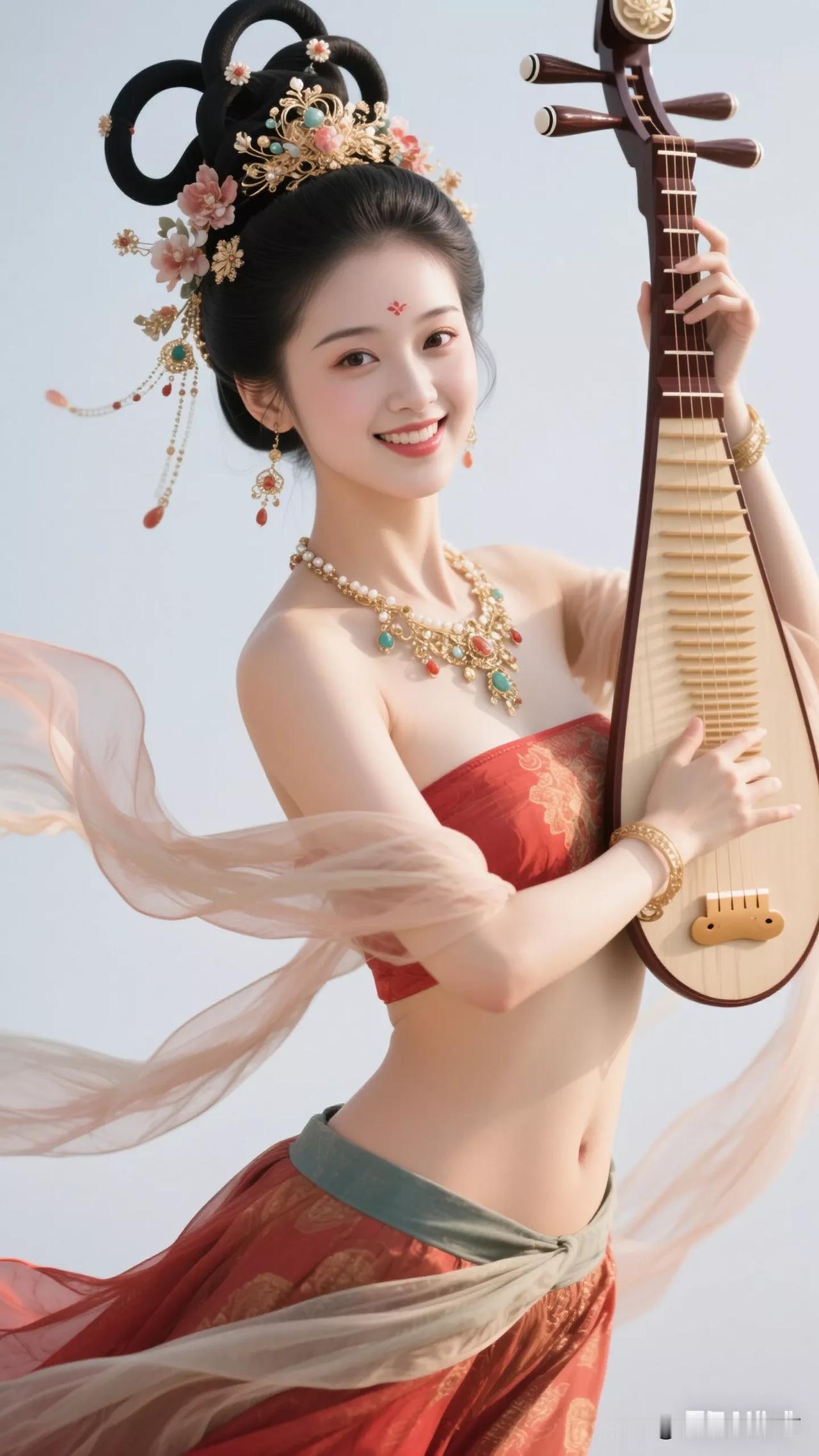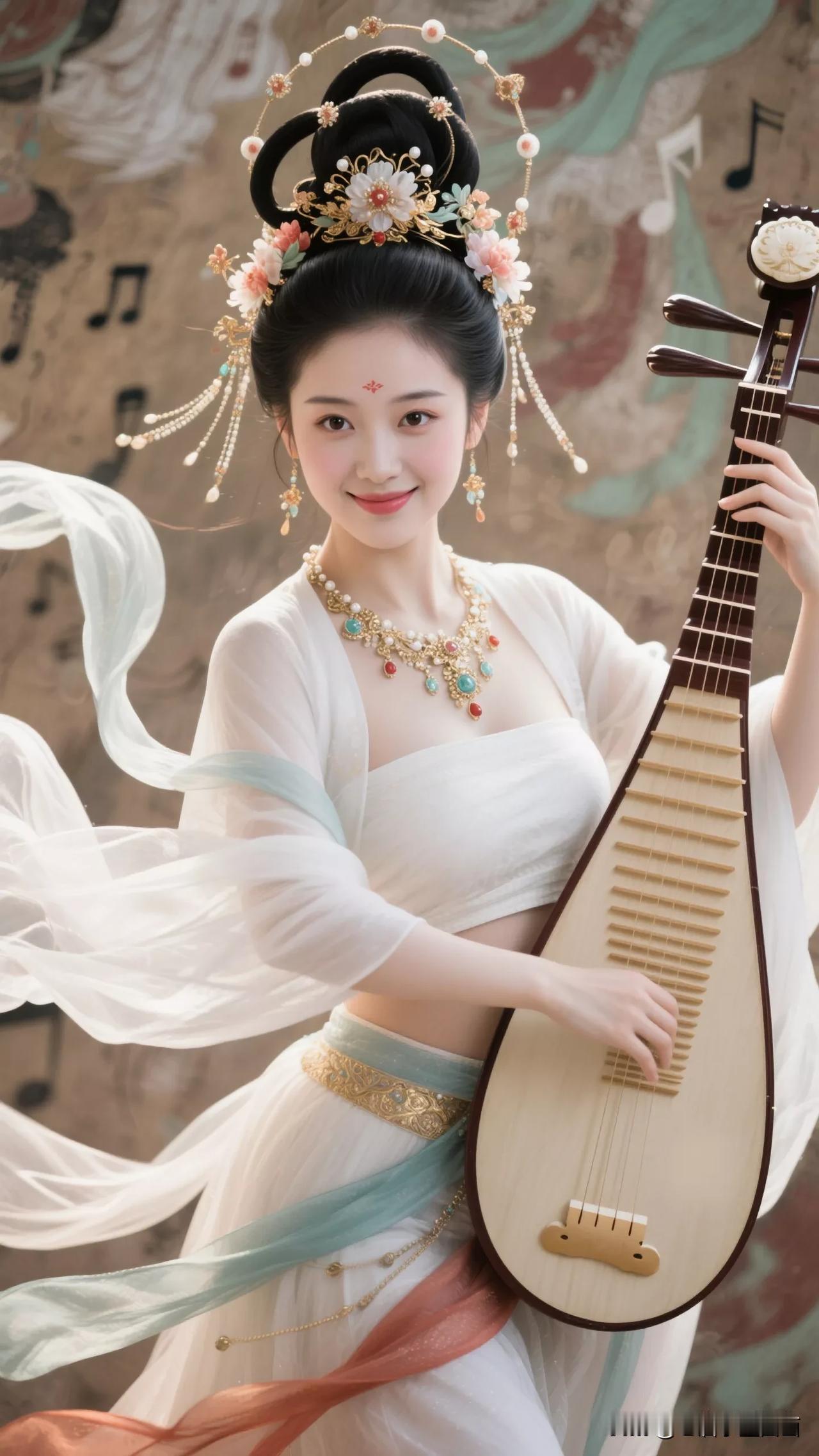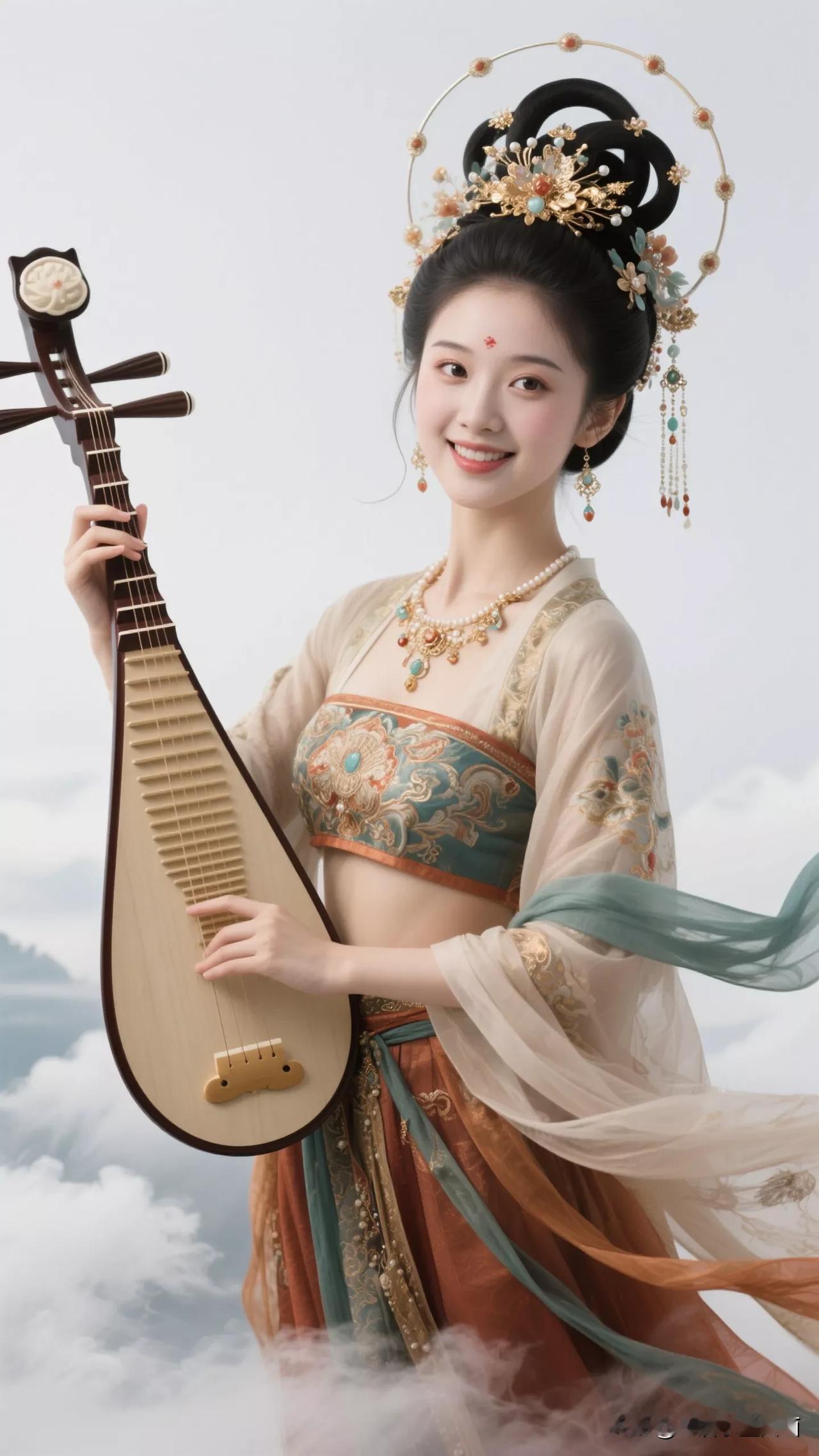 古风美人弹奏琵琶,古典韵味十足张立启原创书画AI作品古仕女发髻服饰集锦首发第67