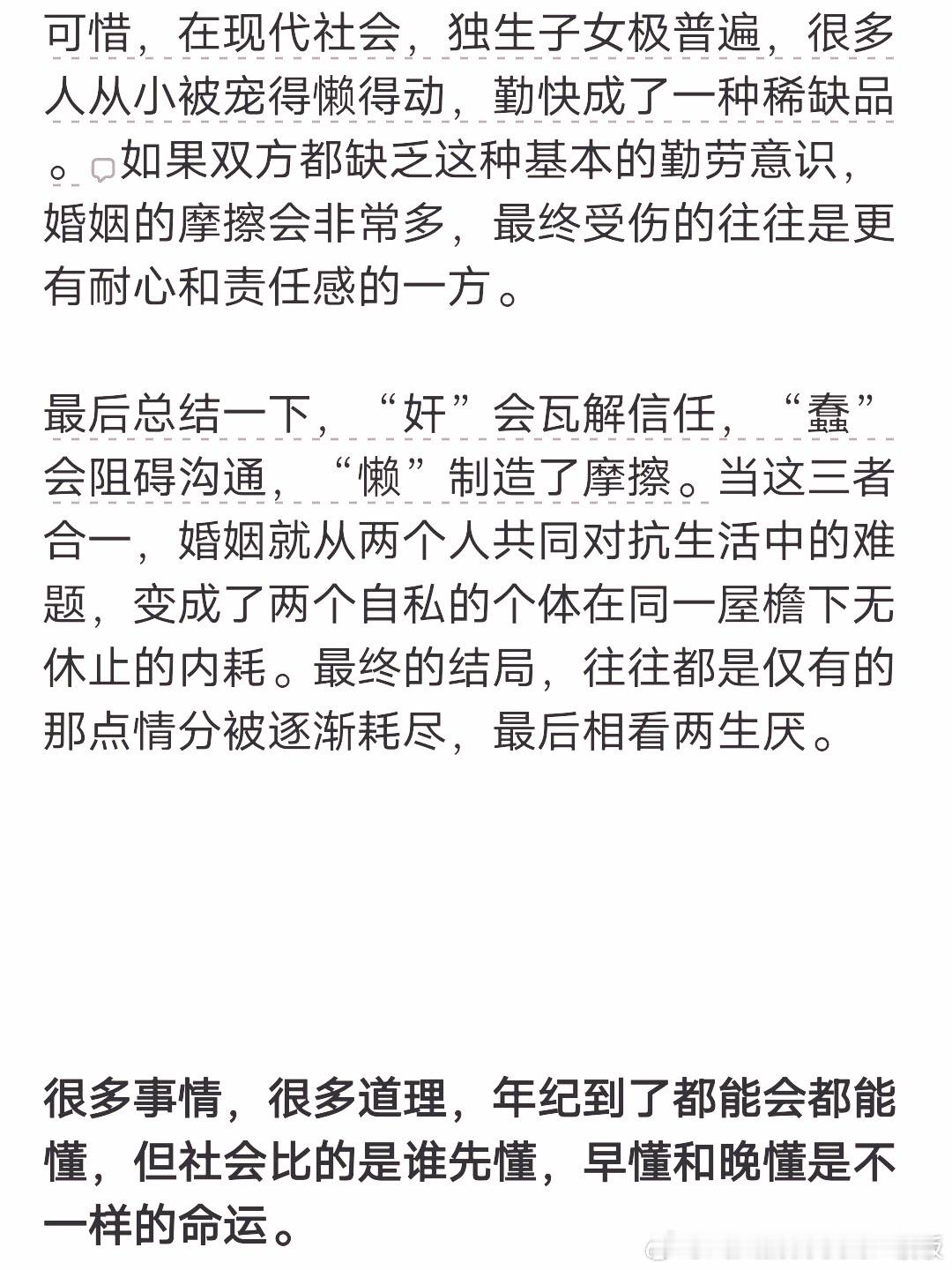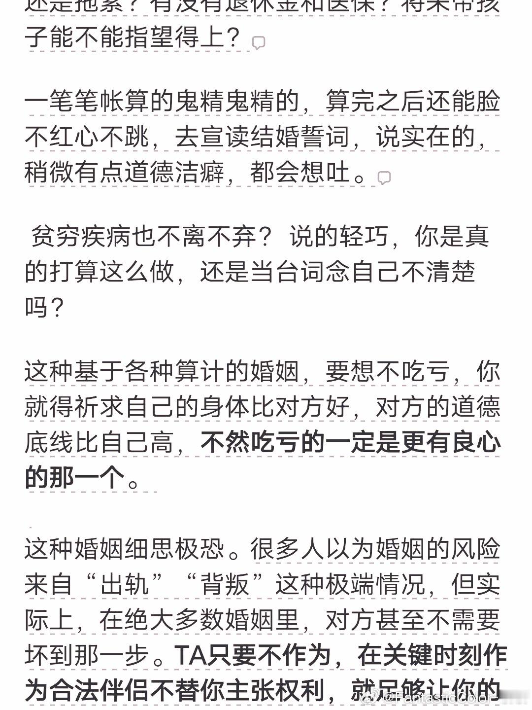 这个我完全同意,现在婚姻已经变质了,抖音快手社交媒体,甚至官方,都在教女的捞钱,美名其曰留个保障,还没结婚,都已经算计离婚的事了,能TM过好么[裂开]