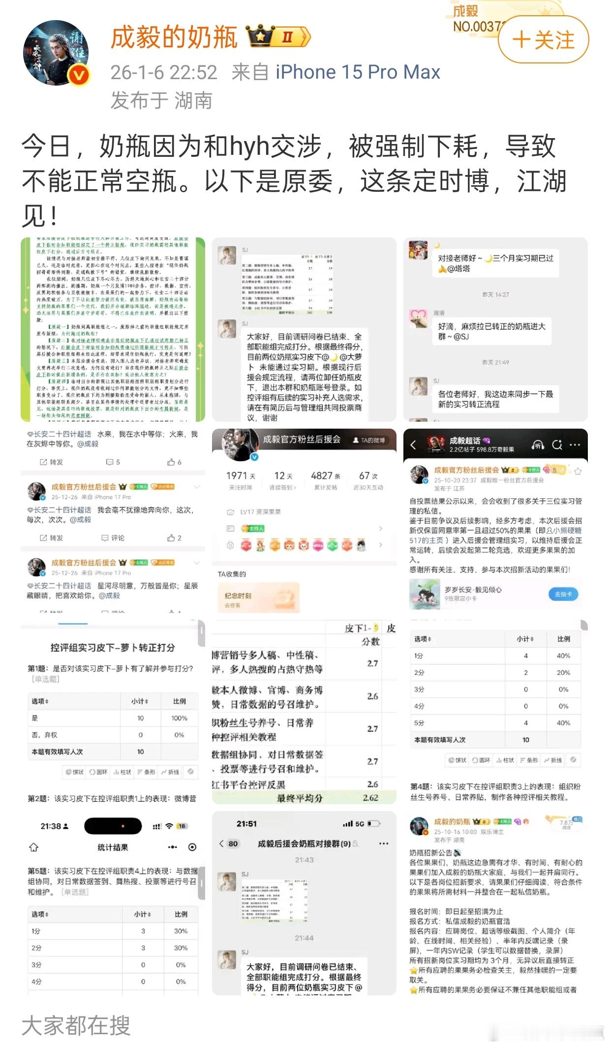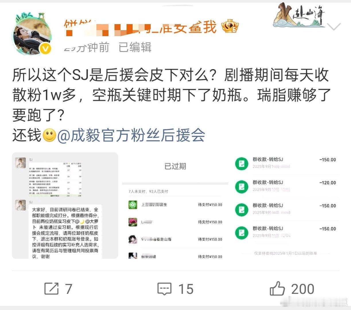成毅大粉奶瓶 被后援会强制下号 导致脱粉并放出事情原委评论区更有粉丝爆料后援会皮下,剧播期每天收散粉一万多,并放出集 z 记录!!!果然是惹谁都不要惹大粉!说句题外话,这种收米行为真的可以有吗?大家怎么看?
