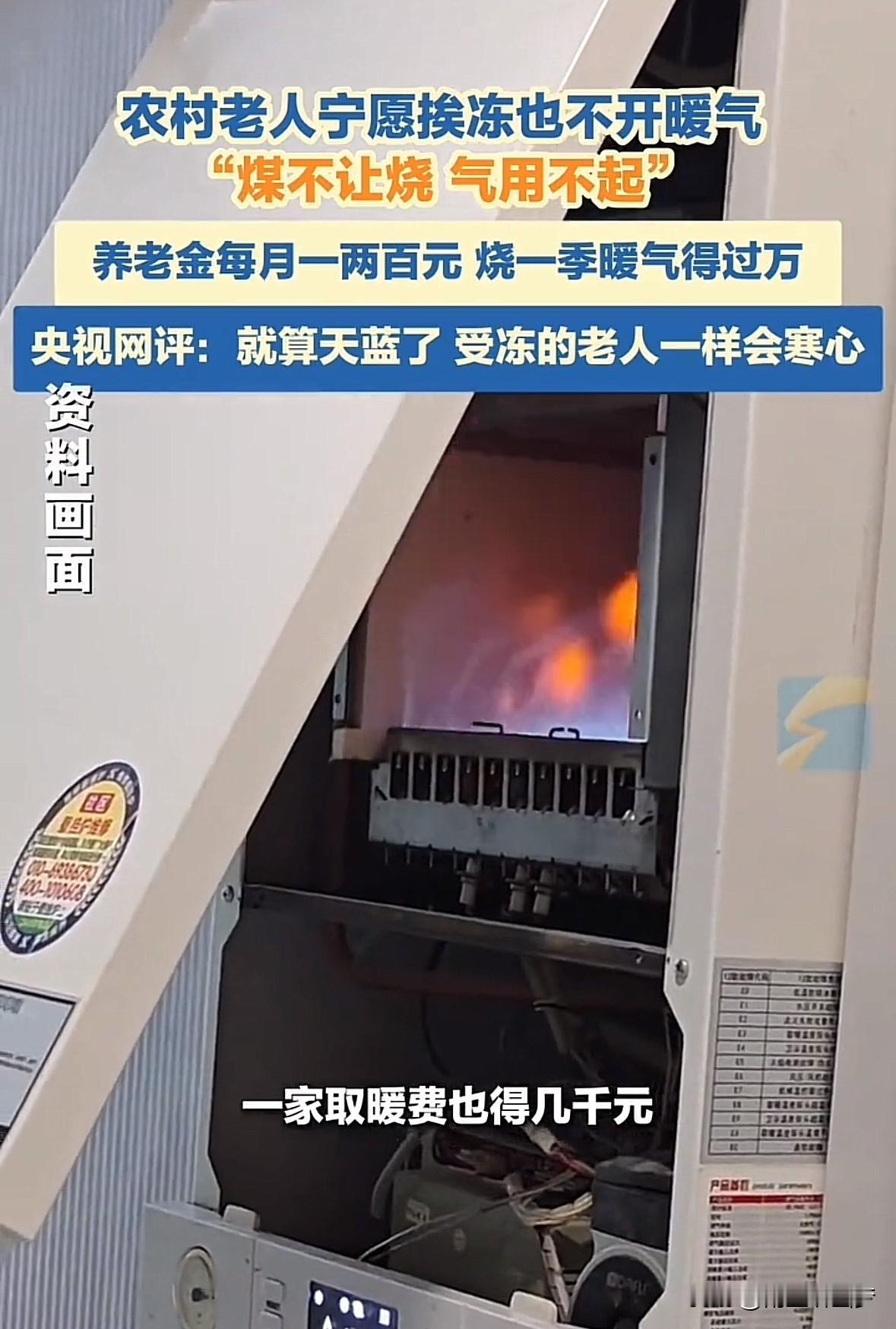 “这暖气,烧着比金子还贵!” 河北农村的老人裹着三层棉袄,瞅着墙上亮堂堂的壁挂炉直叹气。管道是通了,可气价像座山——北京2块6,天津2块8,到了收入更低的承德、邢台,反倒涨到3块4。 一个冬天烧下来,万把块的取暖费,够老人拿八九年养老金。他们不是不爱暖,是真掏不起:开一小时,够买两斤鸡蛋;开一天,半月菜钱没了。实在冻得扛不住,就开半小时,把被窝焐热了赶紧关,屋里照样跟冰窖似的。 “煤改气”本是为了日子更舒坦,可如今,天蓝了,老人的屋里却更冷了。他们缩在炕头搓着手笑:“冻惯了,没事。”可那冻得发紫的鼻尖,藏不住眼里的难。 政策再好,也得看老人能不能暖到心。别让“蓝天白云”的好,变成老人手里攥不住的暖——毕竟,让他们不挨冻,比啥都实在。