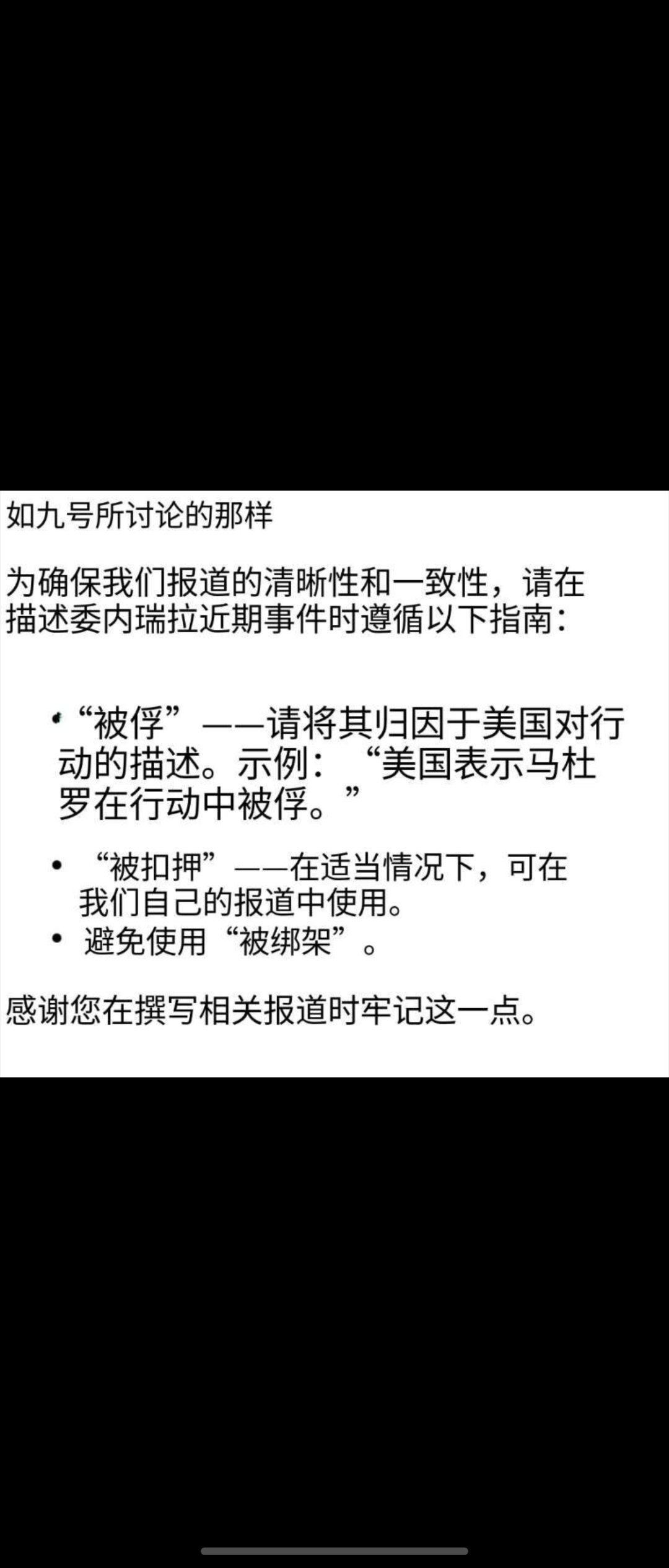 对比日本主流媒体的社论(直接谴责美国践踏国际法),英国BBC就简直不够看了(图2 要求避免使用绑架)