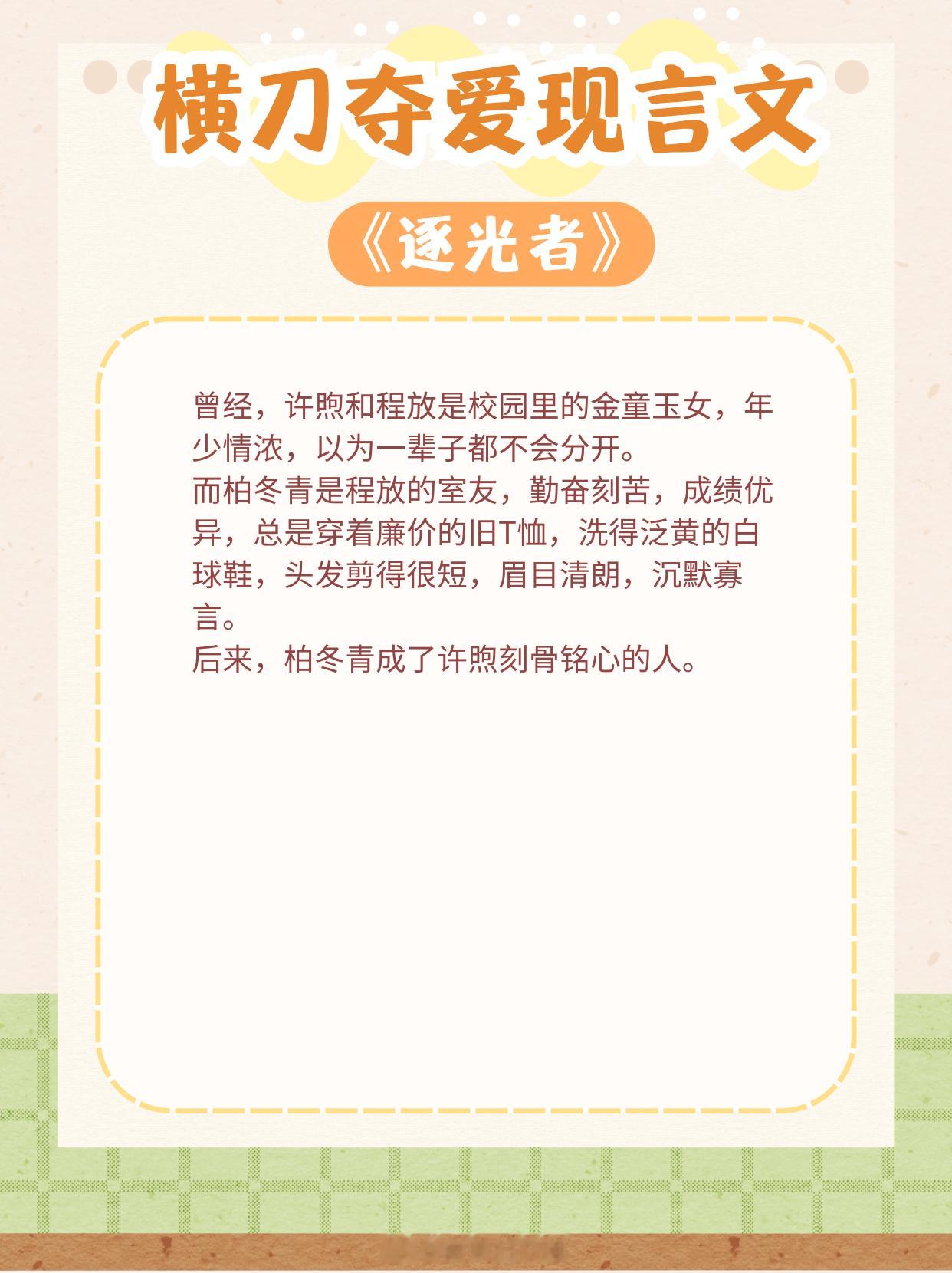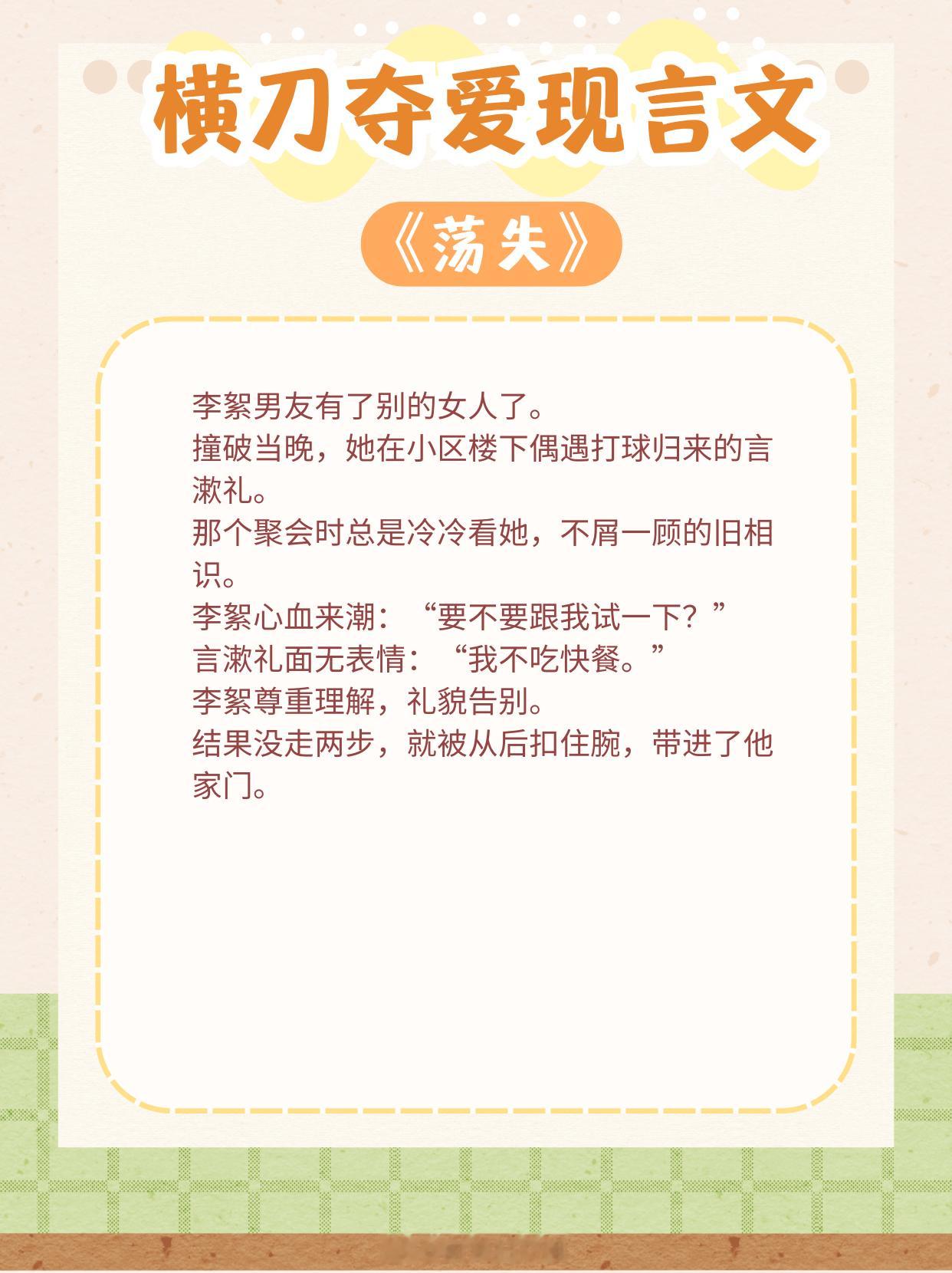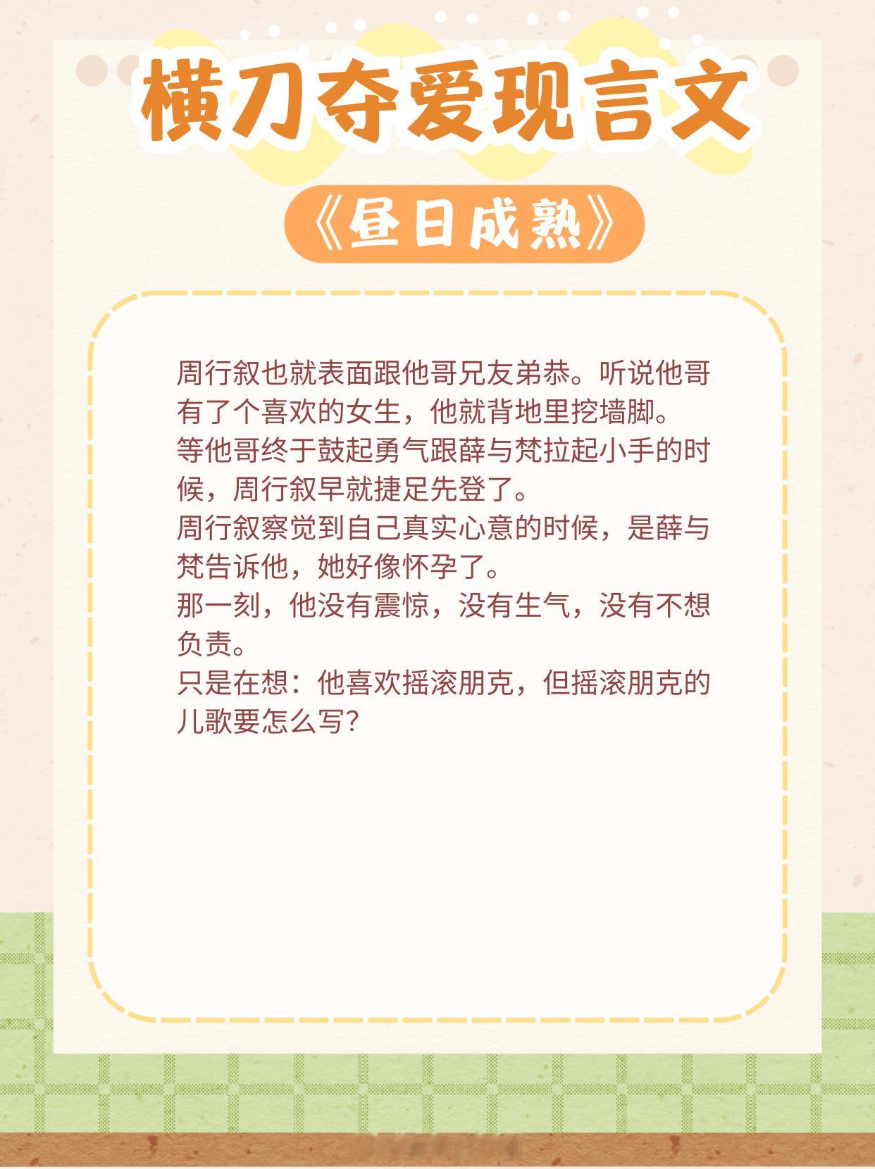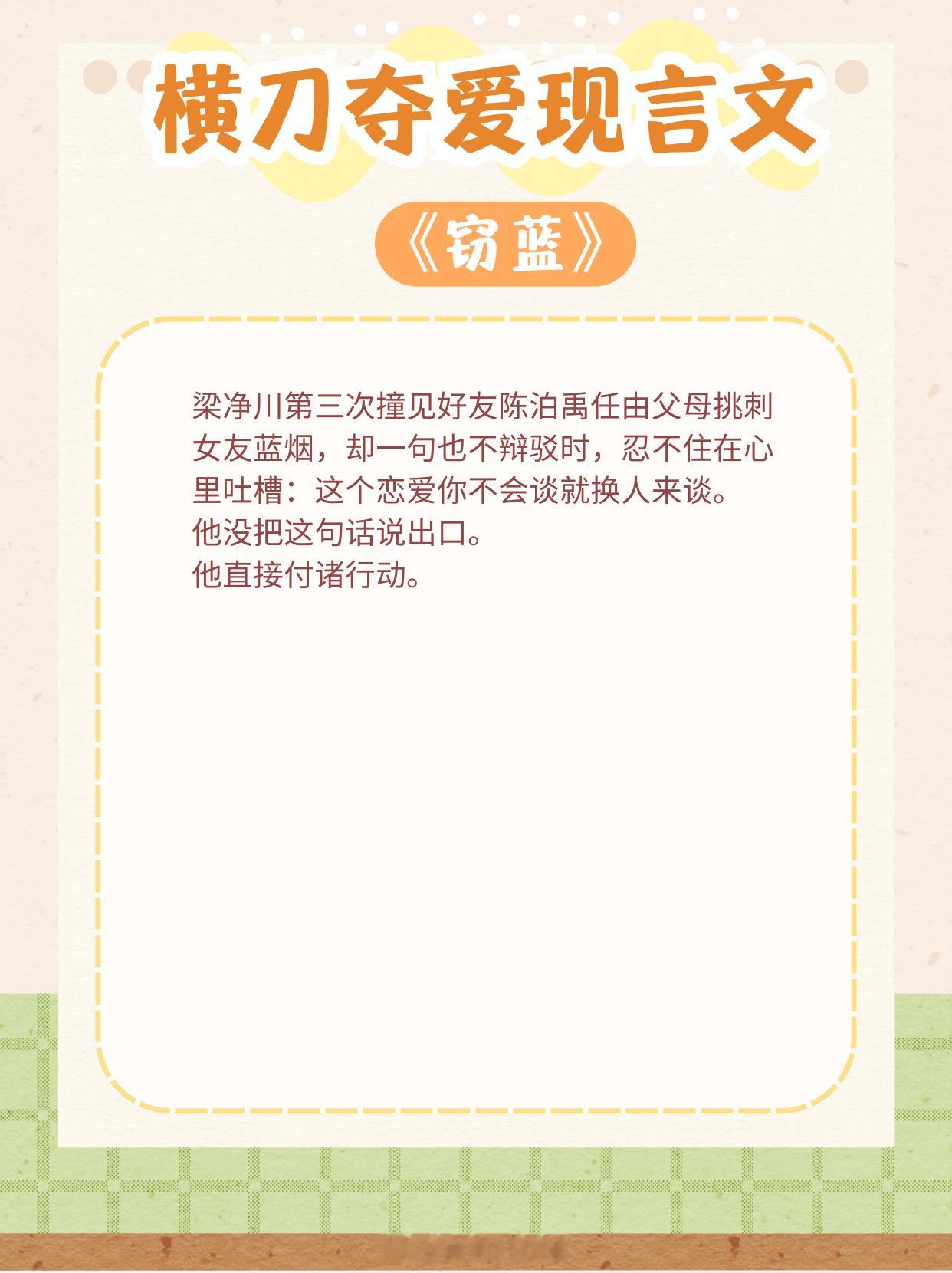 带感的横刀夺爱现言文,你是我的绝不让步!1、《醒春集》作者:澄昔2、《涨红》作者:多梨3、《昼日成熟》作者:清途R4、《窃蓝》作者:明开夜合5、《谁能不爱绿茶呢》作者:桃子薄荷6、《朝暮》作者:程与京7、《逐光者》作者:蔚空8、《公主切》作者:春风榴火9、《荡失》作者:空壳面包这小说写在我心趴上了 越读越上头的小说神作