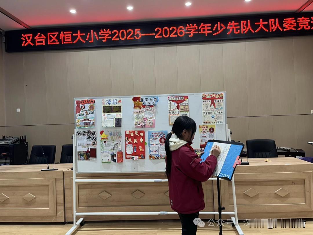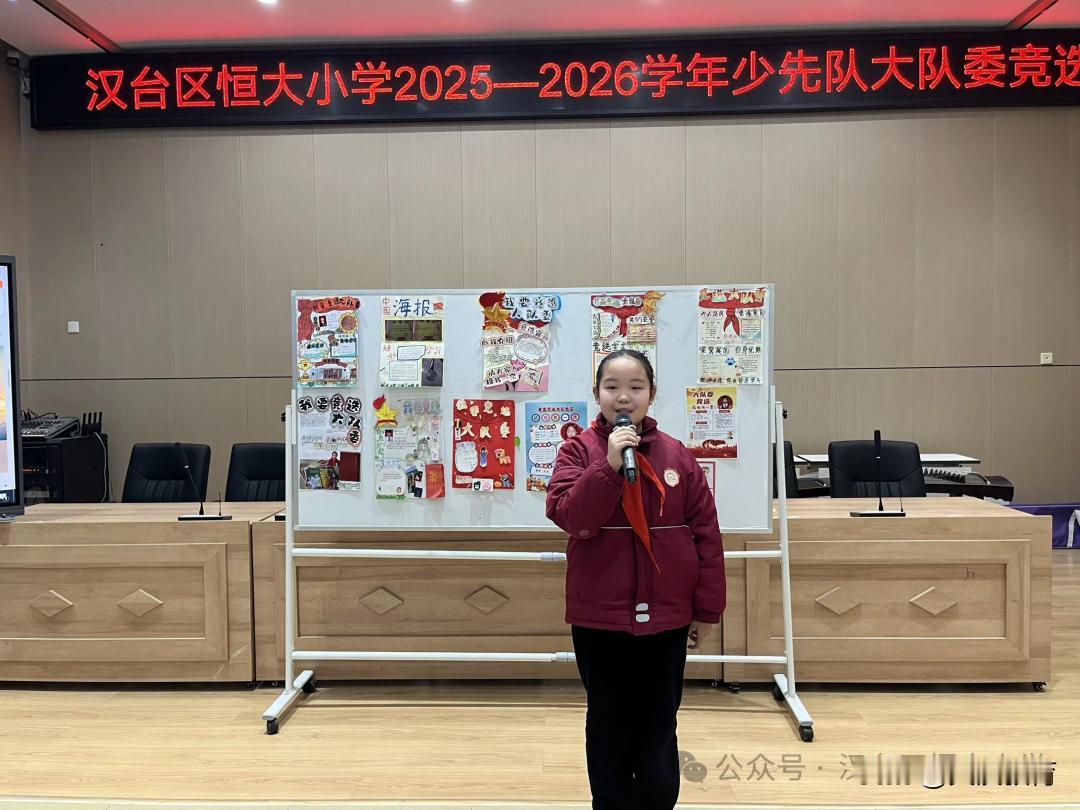 近期,汉台区恒大小学隆重举行大队委改选活动。本次改选活动以“公开、公平、公正”为原则,为同学们搭建了展现自我、挑战自我的广阔平台。 改选前期,候选人积极响应号召,精心筹备宣传海报。队员们充分发挥想象力与创造力,用绚丽的色彩、工整的字迹、真挚的话语,将自己的竞选宣言、特长优势与服务承诺融入海报之中,每一张海报都凝聚着候选人对大队委岗位的热切向往与责任担当。 竞选大会现场气氛热烈而庄重,学校领导、各中队辅导员及少先队员代表组成评审团,共同见证少年们的风采角逐。各位候选人精神抖擞、自信从容,用铿锵有力的语言阐述自己对大队委岗位的理解,分享自身的优势特长,更郑重许下服务同学、协助老师、建设美好校园的承诺。每一句发言都饱含真情,每一个承诺都掷地有声,充分展现了汉台区恒大小学少先队员积极向上、勇于担当的精神风貌,赢得了现场师生的阵阵掌声。 才艺展示环节更是精彩纷呈,成为本次竞选大会的一大亮点。候选人各展所长,舞蹈、朗诵、乐器演奏、绘画展示等节目轮番上演。灵动的舞姿展现青春活力,深情的朗诵传递少年情怀,悠扬的乐曲彰显艺术素养,扎实的书法功底尽显文化底蕴……一个个精彩的表演,不仅展现了候选人全面发展的综合素养,更让现场的辅导员和队员们感受到了他们的自信与活力。 展示结束后,学校大队部根据评委打分评选出了新一届大队委,她们将在不久后的少代会上光荣上岗,为学校、为队员们服务,助力校园发展。 此次大队委改选活动的圆满举行,不仅选拔出了一批优秀的大队委候选人,为学校少先队工作注入了新的活力,更在活动中锻炼了同学们的表达能力、组织能力与应变能力,激发了他们的责任意识与服务意识。相信新当选的大队委成员将不负众望,以饱满的热情投入到少先队工作中,与全体同学携手共进,在逐梦路上勇毅前行,共同书写汉台区恒大小学的精彩篇章!