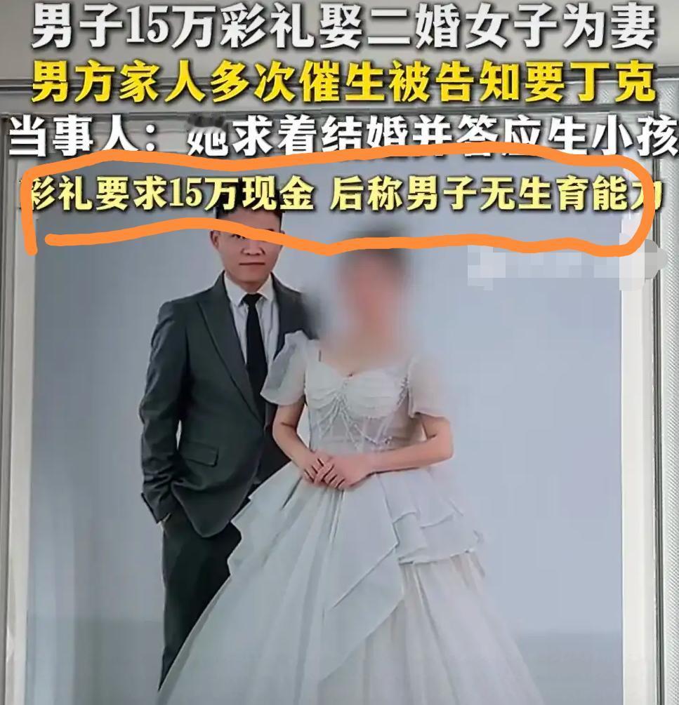 离谱!婚骗子又出新套路! 湖南长沙,一男子娶了个二婚的老婆,婚前说得挺好,15万的彩礼,全只要现金,然后结婚生小孩。 男方和女的商量说,彩礼能不能只给12万,女的不同意,后在男子的争取下,还是给到她了15万彩礼。 女的婚后一系列操作就来了,新婚夜不和男子同房,去和闺蜜一起住,不但如此,婚后两年,夫妻俩都没有圆房。 男方家坐不住了,开始催生,女的先是说要照顾自家的弟弟没时间,后被催急眼了,直接放话说要丁克,还造谣说男子没有生育能力。 这可把男方家气的够呛,说丁克也可以,没给彩礼前要这么说,婚就不会结,现在彩礼给了,这么做就是害人。 当前男方家起诉女的骗婚,要求退还彩礼,而女的也巧舌如簧,说没有虐待公婆,结婚两年了,彩礼退不了。 这个女人做事不太地道,喜欢丁克,可以直接找要丁克的人结婚,大家提前先说好,婚后才没有矛盾,不除非女的没力了生育能力的可能。 女性有掌握自主生育的权力,可以选择生,也可以选择不生,但婚前答应了对方,拿到彩礼后却反悔,实属无赖。 大家觉得男方拿回彩礼的可能性大吗? 二婚女子收15万彩礼后要丁克 二婚扎心事实