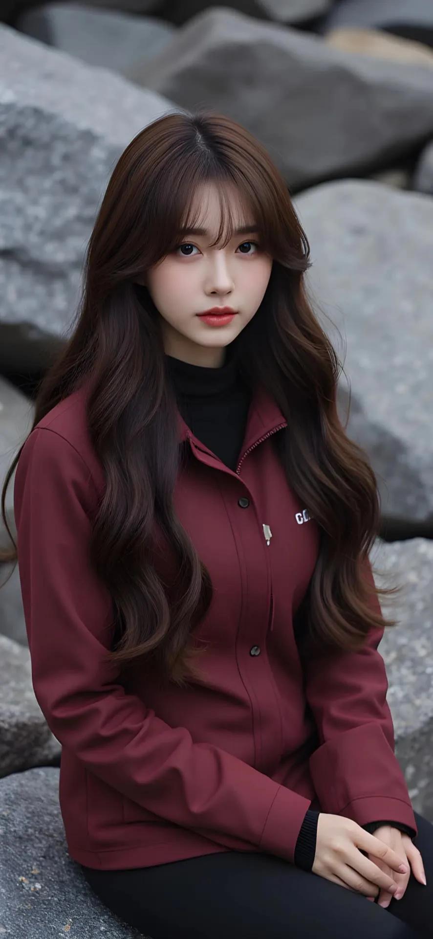 冬日暖阳下,红唇少女与雪景相映成趣。