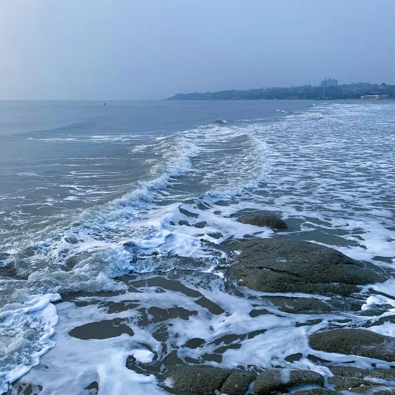 上联:云卷云舒天际远;念姐邀对潮起潮落海边悠