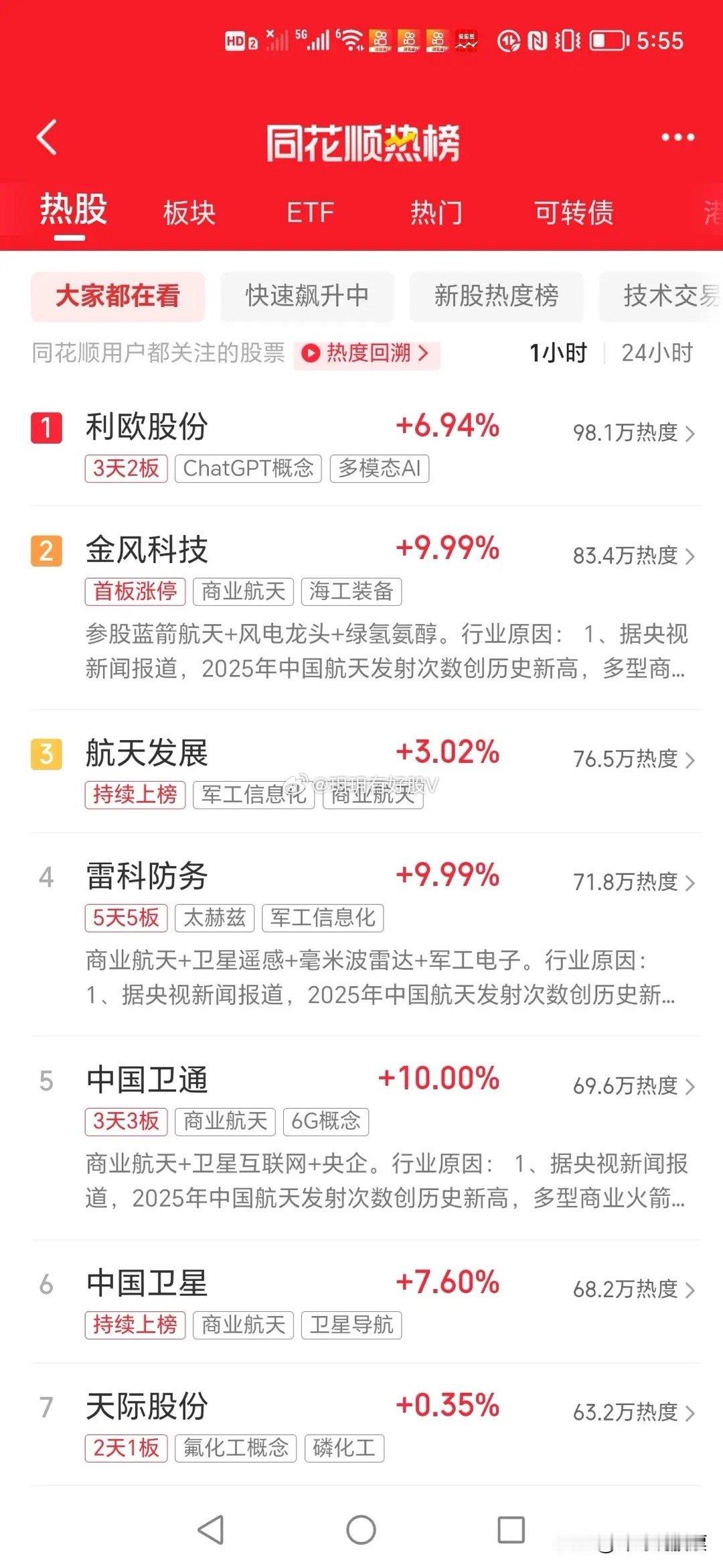 明天炒什么?看看大家都在关注啥?榜一 利欧股份液冷+AI智能体龙头,它的强弱直接关系到板块高度,今天板上被砸,是洗盘策略还是板块走冷,明天见分晓!榜二 金风科技今天鲁信创投 金风科技双双海底捞涨停法,也是商业航天上市预期来的个回马枪了!榜三 航天发展天天来一波,很多人都在仰望,拍断大腿,我一哥们,前面拿了三板,欢天喜地,现在天天唉声叹气,我安慰他,行情是走出来的,不用惋惜[笑哭]榜四 雷科防务第二波今天5板,小群号召力,不过看今天小群卖了!榜五 榜六 中国卫通 中国卫星卫星概念还是强榜七 天际股份游资大佬今天T了,没拉板?难道是三个和尚没水喝?[捂脸]