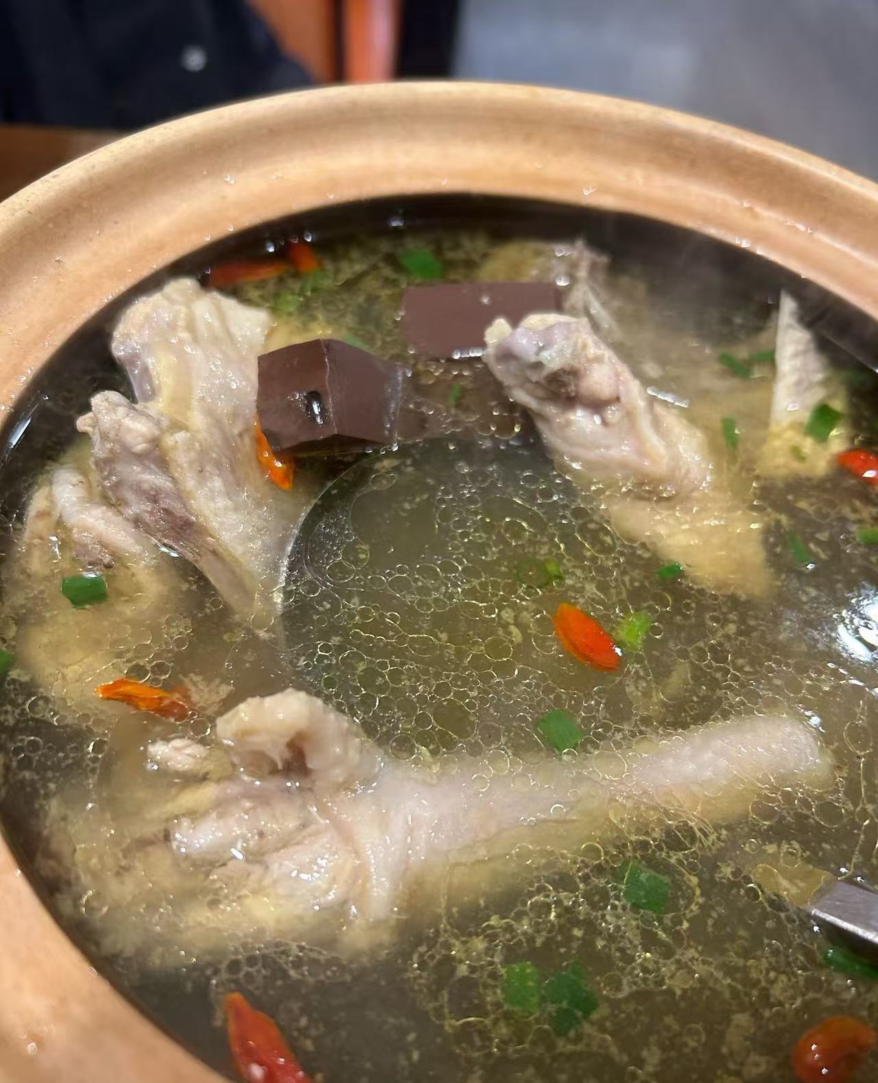 3️⃣.农场土鸡汤,炖的火候超好,鸡血鲜嫩,鸡汤鲜亮,滋补的鸡汤。
