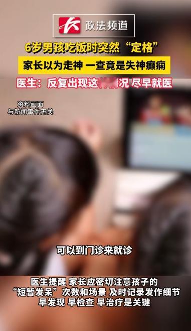 “悲剧还是发生了!”近日,湖南长沙,一男孩吃饭时,端着碗突然不动,并且眼神空洞,对呼唤毫无反应,家长起初以为男孩只是在走神,结果这种情况在短短几天发生了4次,这才将男孩带去就医,结果竟被确诊为失神癫痫!医生:应尽早就医!   近日,湖南长沙的张女士(化名)经历了一场令她震惊的事件,一天,孩子小明(化名)正在家里吃饭,突然端着碗停了下来,眼神空洞,整个人看起来像是失去了意识。 张女士看到这一幕,立刻提醒小明,“快点吃饭”,然而,小明没有任何反应,依然呆呆地坐在那里,起初,张女士以为小明只是走神,可能只是有些心不在焉,她并未过多在意,继续劝他赶紧吃。   然而,类似的情况很快再次发生,接下来的几天里,小明又出现了几次眼神恍惚、发呆的症状,每次持续的时间不长,但明显让张女士感到担忧。   她开始注意到,每次这种情况发生时,小明都会突然停下手里的动作,目光空洞,仿佛进入了一个完全不同的世界,起初,张女士以为是孩子压力大或者太累了,只是单纯的走神,但随着这种情况逐渐频繁,她开始产生了疑虑。   在小明连续四次出现类似情况后,张女士决定带他去医院检查,经过一系列的检查,医生给出了一个令人震惊的诊断,小明患上了失神癫痫,医生详细解释道,失神癫痫是一种常见的儿童癫痫类型,发作时孩子会突然失去意识,表现为凝视、发呆等症状,发作通常持续几秒钟到几十秒钟。   对于孩子来说,癫痫发作有时很难被家长察觉,因为这些症状并不像成年人那样明显,且发生时可能不会伴随身体抽搐,因此,家长容易误以为孩子只是走神或是心不在焉。   医生特别强调,对于孩子来说,家长一定要保持警觉,如果孩子在吃饭、玩耍或与人交谈时,突然出现发呆、不回应呼唤等现象,尤其是这些症状反复出现,就需要及时就医,不然的话可能会影响孩子的认知和发展。   张女士听后十分震惊,但也松了口气,因为通过及时就医,至少找到了问题的根源,她深刻意识到,作为家长,除了关心孩子的饮食和学习,还要时刻留意孩子的健康状况,特别是一些看似无关紧要的细节。   此事很快在社交媒体上引发了热议,许多家长纷纷留言表示,虽然癫痫在成人中比较常见,但对于儿童来说,很多癫痫的症状不容易被发现,很多家长认为,孩子发呆、走神、失神等行为可能只是因为年纪小注意力的问题,直到看到张女士的经历,才意识到这些情况有可能是癫痫的征兆。   张女士的经历让更多家长意识到,孩子的健康不仅仅是体现在外表的成长和发展上,心理和神经的健康同样重要,作为家长,应当对孩子的每一个小细节保持警觉,尤其是那些看似不起眼的行为,如发呆、走神等,如果出现频繁的异常现象,及时带孩子去医院检查,是确保孩子健康成长的关键。   这次事件不仅让张女士深刻感受到作为家长的责任,也让更多家长意识到,只有早发现、早治疗,才能确保孩子有一个健康的未来。 信息来源 :长沙政法频道