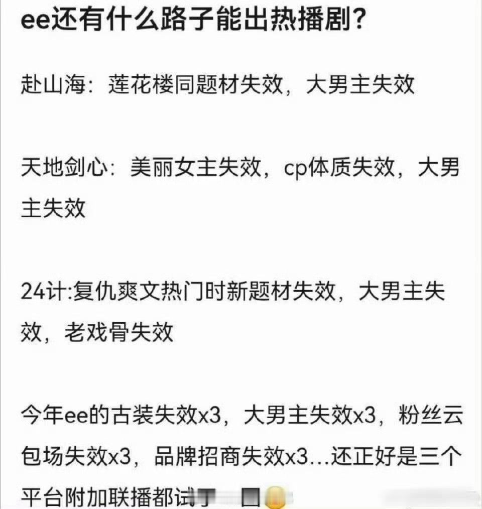 2025年度最扑剧集 有网友说成毅现在三连扑不是最可怕的,最可怕的是看不到未来…其实,无论是评选最扑剧集还是评选2025年度水爆的剧集都是赴山海+天地剑心+长安二十四计 大家感觉成毅还有什么路子能出热播剧?