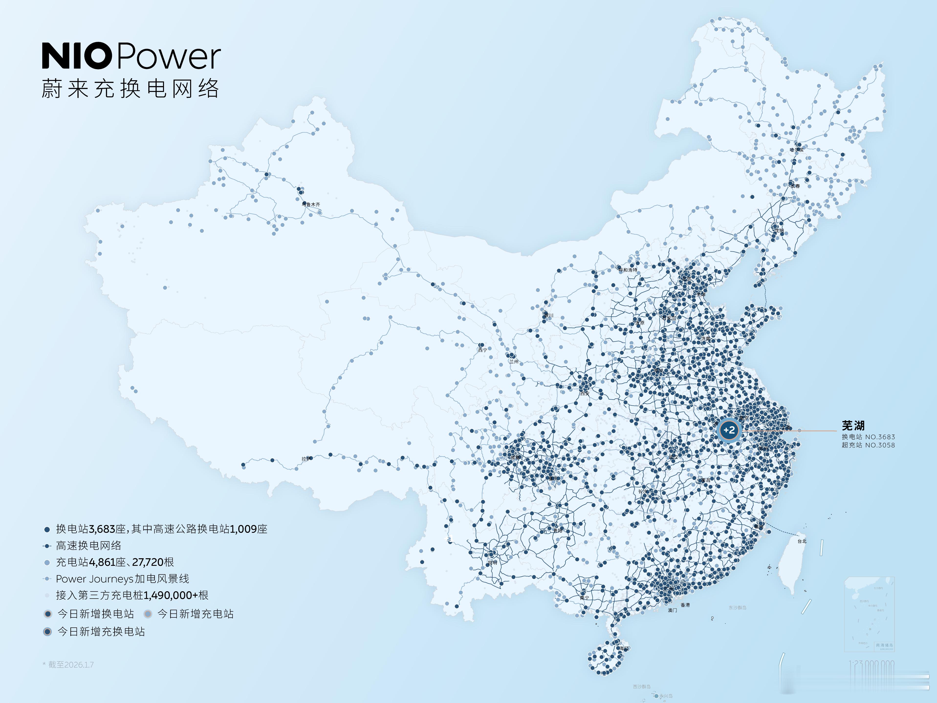 1月7日 NIO Power 2站上线NO.3683 蔚来换电站 | 芜湖国际会展中心NO.3058 蔚来超充站 | 芜湖国际会展中心持续布局-让加电比加油更方便