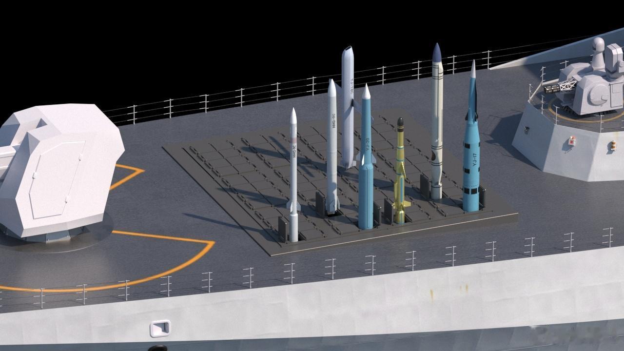 阅兵之前,我海军大型导弹驱逐舰垂直发射单元里,装填的主要是鹰击-18反舰导弹、红旗-9B防空导弹。现在,在055的武器库中,选择余地大了很多,有鹰击-17高超音速反舰导弹、鹰击-20高超音速反舰导弹、鹰击-18C隐身巡航导弹、新型火箭助推鱼雷、红旗-9C防空导弹,十八般武艺,样样精通。