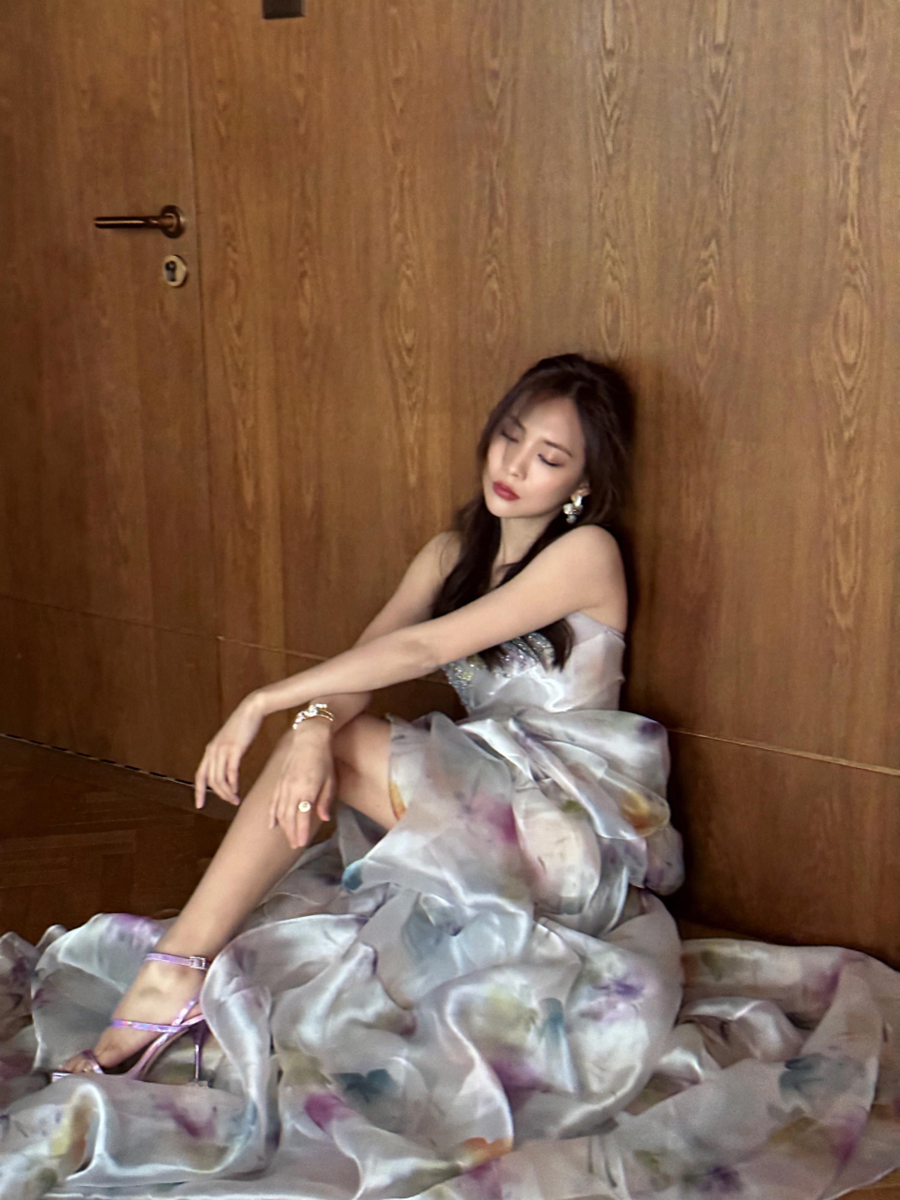 王霏霏,长裙美腿的优雅穿搭格调。王霏霏