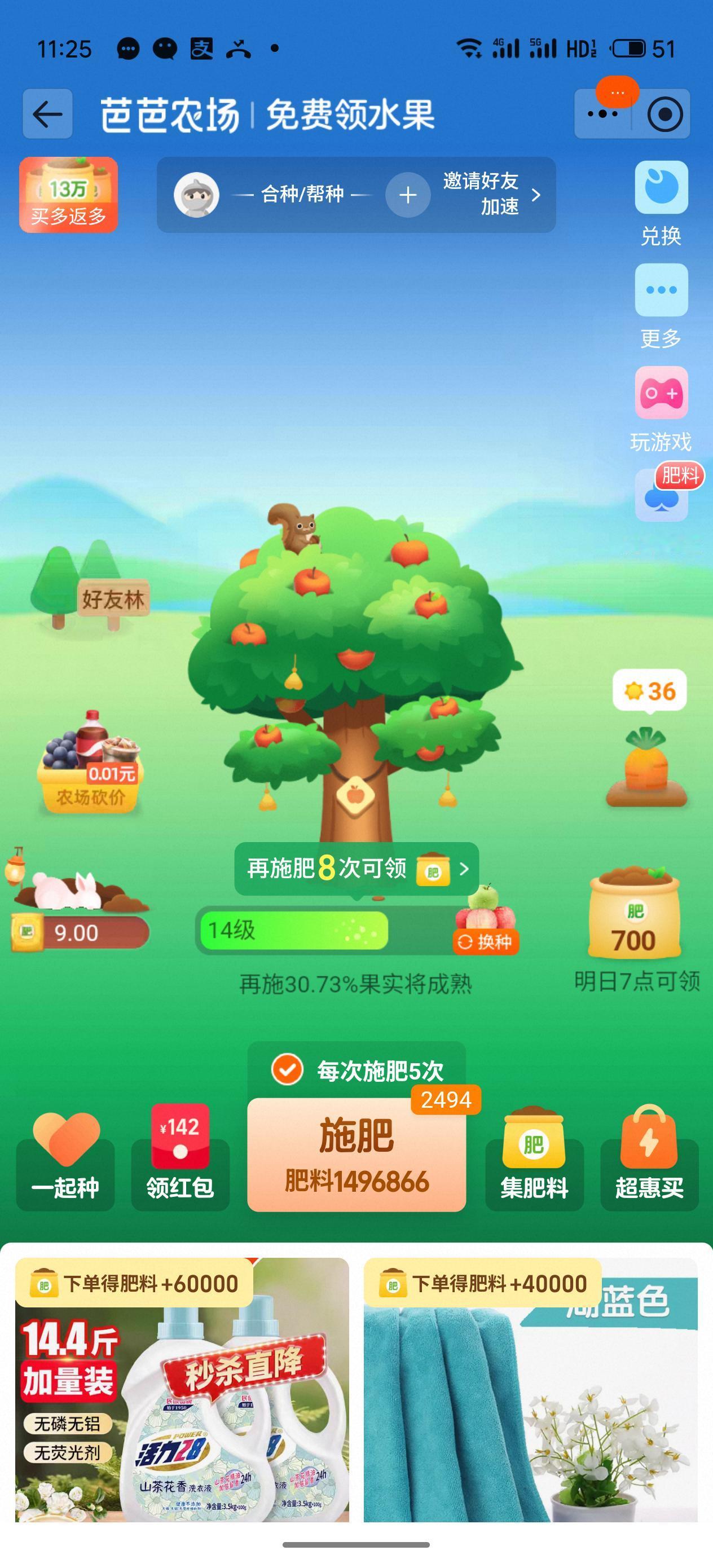 要午休吃饭了 手机淘宝APP 先拍照📸 做任务 把几分钱的小红包领了备用 然后红包签到 几个任务做一下,就可以下拉,看淘宝秒杀那里出现了红包,点击去领取 然后退出红包签到,进淘宝秒杀 这里可以找到红包抵扣后几分钱几毛钱的 比如抹布 纸巾 食盐什么的 打开 浏览 选定了 记得收藏 加购 复制标题 退出来 进芭芭农场 上滑一下,搜索栏 粘贴刚才复制的标题 然后挨个宝贝打开 很容易找到刚才加购的 因为你收藏了 找到后,浏览一下,右上角的购物车点进去 选中付款 然后逐步退回,就可以看到肥料也到手啦 每天貌似最多三次吧