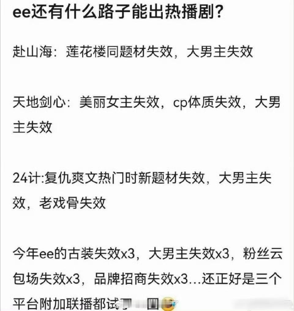 2025年度最扑剧集 有网友说成毅现在三连扑不是最可怕的,最可怕的是看不到未来…其实,无论是评选最扑剧集还是评选2025年度水爆的剧集都是赴山海+天地剑心+长安二十四计 大家感觉成毅还有什么路子能出热播剧?