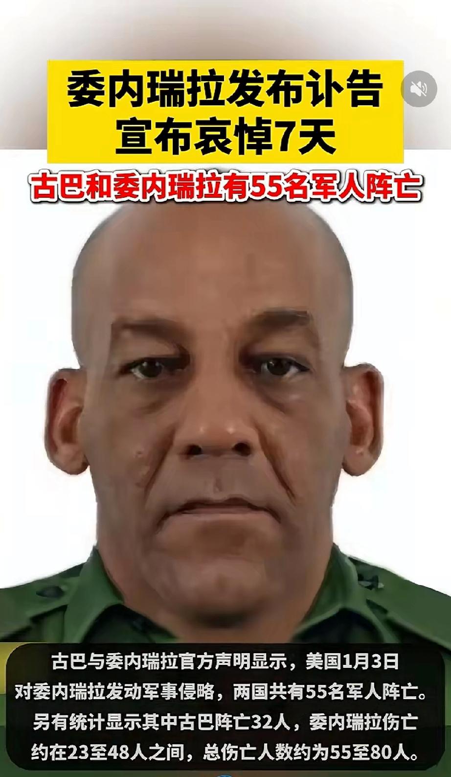 委内瑞拉发讣告,宣布为死亡的士兵哀悼7天。其中古巴死了32人,委内瑞拉死了23人,总伤亡人数约80人。那美军伤亡多少人?