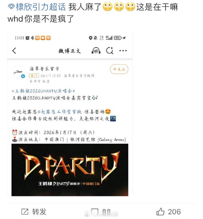 王鹤棣演唱会嘉宾,王鹤棣演唱会嘉宾赵露思王鹤棣演唱会邀请赵露思,最崩溃的是棣欣引力 …我恨我秒懂 棣欣引力大粉脱粉了,说以后只爱虞书欣。我的天,网友怎么那么有才啊~王鹤棣2026D.PARTY演唱会嘉宾官宣赵露思。四川老乡98line拍过广告现在要合作舞台了!!!玩得开心,预祝演唱会圆满成功🎉 棣欣引力超话里cpf都在脱粉了 王鹤棣DPARTY演唱会