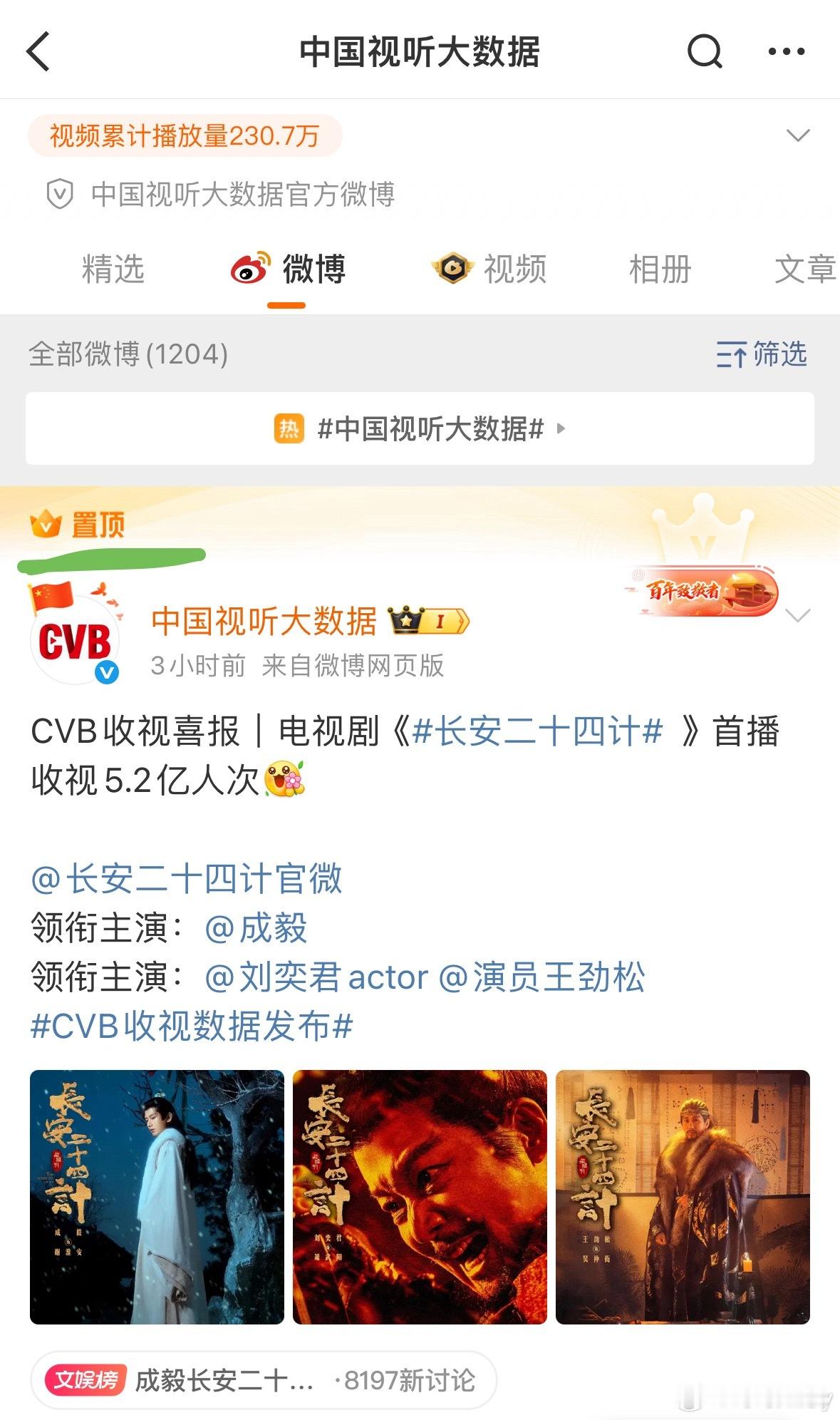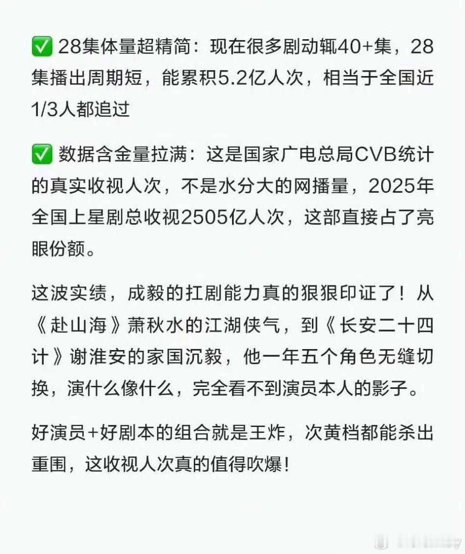 成毅长安二十四计首播收视cy成毅谢淮安 成毅《长安二十四计》,继CVB1.130%拿下史冠后,更是以28集精简体量首播收视破5.2亿人,大视听官博置顶,当之无愧的2025年度黑马,2026年的开门红!!一部剧播的好不好看,看联名周边,看观看人次,再看官方后续,今日已开启由官方承办的痛楼巡展。长安二十四中成毅化身智谋担当谢淮安,在波谲云诡的长安棋局中步步为营,观众直呼剧情高能、演技在线——或缜密布局,或凌厉交锋,成毅将谢淮安的谋略与布局刻画入微!好剧不容错过,成毅谢淮安值得更高,我们《长安二十四计》必长尾不断。