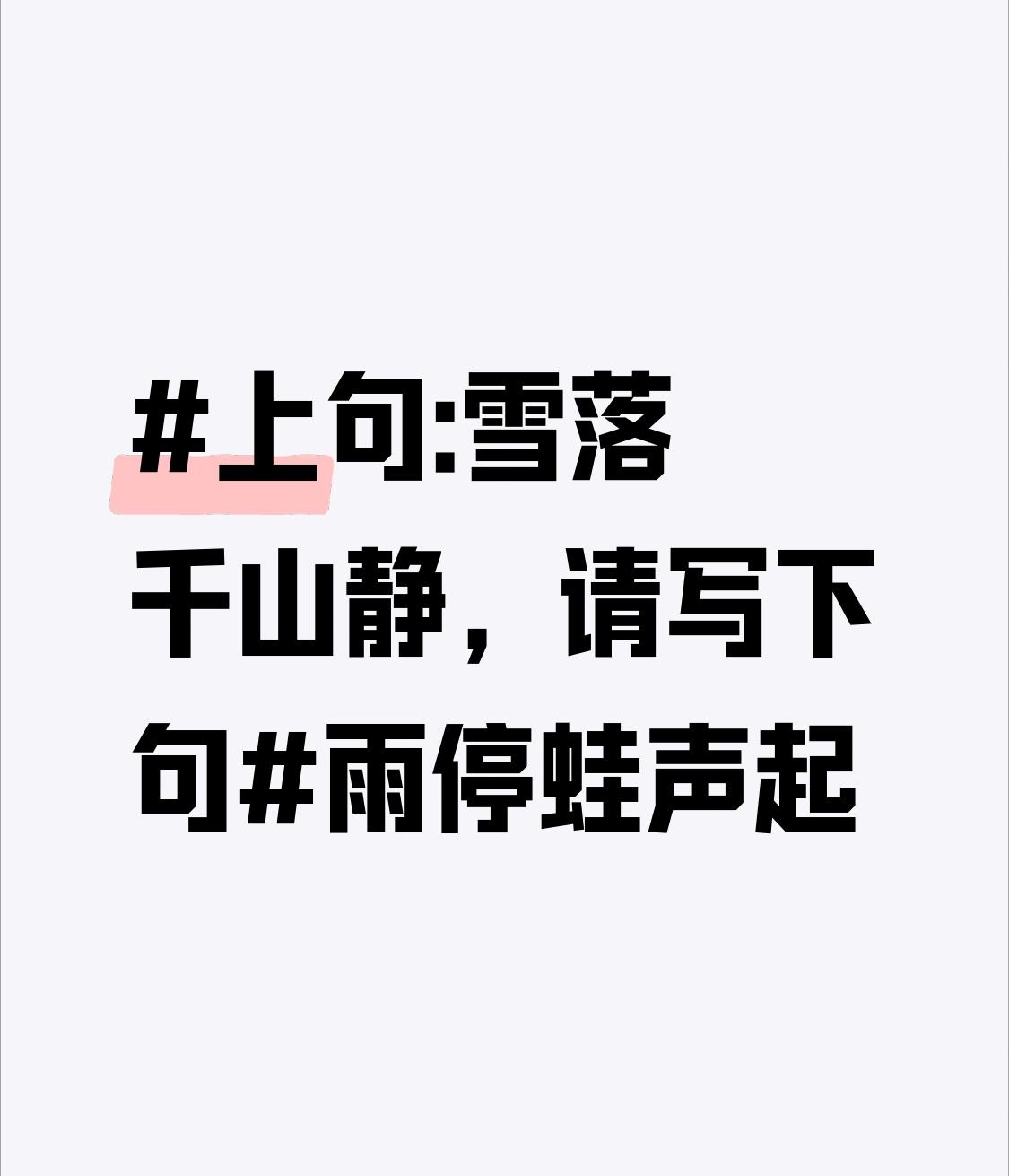 上句:雪落千山静,请写下句雨停蛙声起