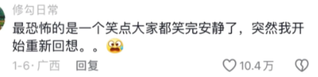 最恐怖的是一个笑点大家都笑完安静了,突然我开始重新回想。