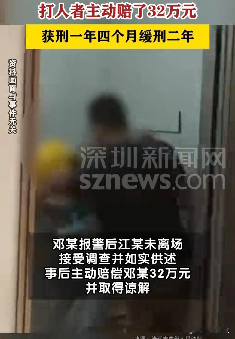 判的好!广东一外卖员给顾客送餐时,因为门口有门禁他进不去,就没给顾客送上门。顾客下楼取餐时和他发生了口角,顾客暴打了外卖员。 之后外卖员报警,也做了伤情鉴定,被鉴定为轻伤一级。这时顾客后悔了,他主动和外卖员联系,赔偿给外卖员32万,取得了外卖员的谅解。 最终这个顾客被判刑一年零四个月,缓刑二年。 很多网友看到这个案件后,第一反应是轻伤能赔32万,这个伤来的值。 32万可不是这么容易赚到的。 可是我说我告诉你,轻伤一级的标准后,你们再看看值不值? 轻伤不是我们想象的擦破点皮,流点血,打几巴掌,这么简单。这些叫轻微伤。轻伤一级在法律上是有很严格的判定标准的。 轻伤包括轻伤一级和轻伤二级,一级更严重。轻伤一级的标准是,如果是面部的伤,必须符合面部有6cm以上的疤痕,或者是多个伤口达到10cm以上。或是牙齿被打掉过折断,如果是内伤,肋骨得断6根以上。 如果是这样的标准,你还觉得被打成轻伤赔这些钱值吗? 还有如果把别人打成轻伤一级,是会判刑的,量刑标准会在1年半到三年之间。除了被判刑,被害人也可以提出民事赔偿。 所以这个案件里,如果顾客不主动和外卖员和解,取的他的谅解。顾客不仅要坐牢,还要照样赔偿外卖员。可能会赔的少点,但是比起几年的牢狱生活,这已经很好了。 希望他下次再遇到这种情况时,摸摸口袋里现金是不是够。 对于这件事,你怎么看呢?