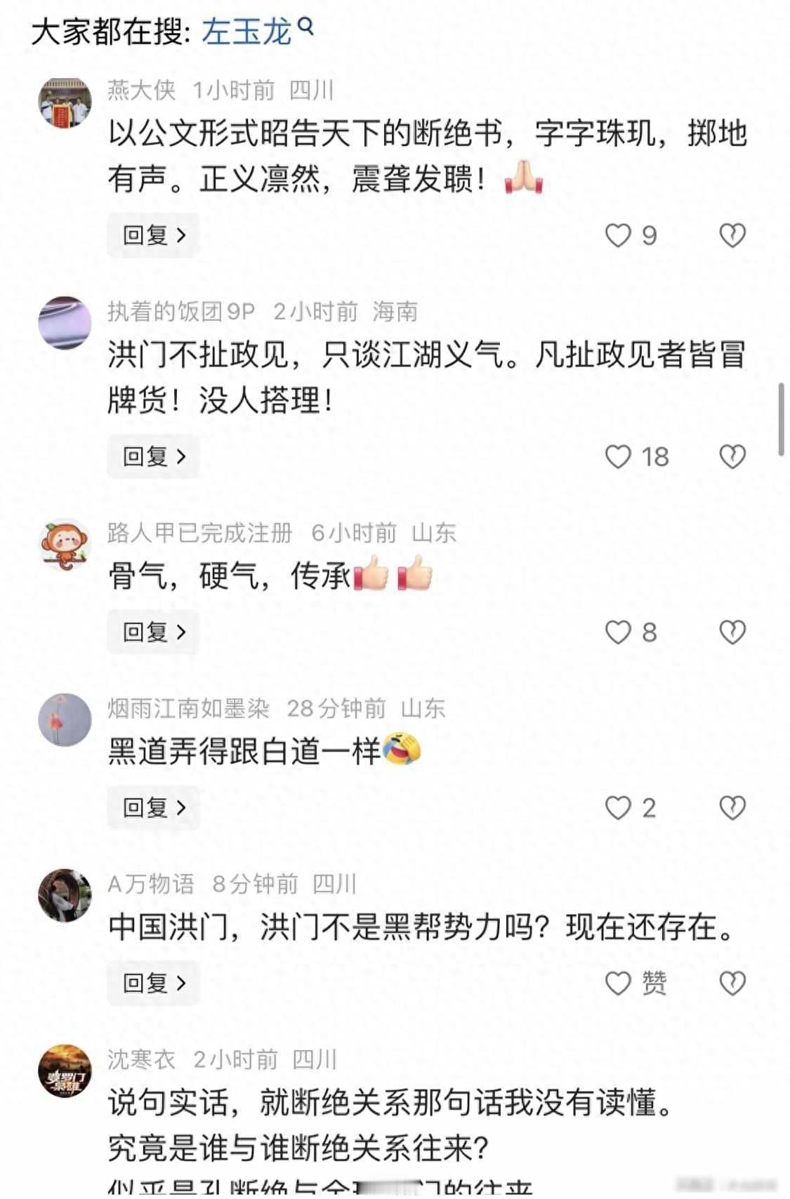 世界洪门总会向全球华人社会扔出“重磅炸弹”——以最直接、最不留情的方式,宣布与左玉龙断绝一切关系。措辞之激烈、立场之鲜明,罕见。对洪门来说,这是一次“清门”,对全球华人来说,这是一次“宣告”。 明确无误地告诉所有人:谁踩了民族大义的红线,就别想再混在这个圈子里。 左玉龙,原本是大陆背景,却在厦门堂而皇之接受了一纸来自“中华民国”的聘书。洪门的回应没有犹豫,直接定性为“违背九二共识”,严重触碰了“一个中国”原则。 这下好了,洪门的锅盖直接掀了,公告写得毫无转圜余地:清门逐人,即日起断绝一切往来。 很多人可能会问:左玉龙一个人,能有多大能量?洪门怎么下手这么重?可问题就在这——不是左玉龙有多重要,而是他踩了哪根“神经”。洪门在公告中说得很清楚:这是原则问题,不容讨价还价。尤其在民族统一、国家认同这根红线上,洪门历来是“零容忍”。 洪门是全球最古老、影响最广的华人组织之一,最早追溯到明末的天地会,洪门从“反清复明”一路走到今天,三百多年历史,早就从秘密结社变成了公开合法的社团网络。 从郑成功到孙中山,从抗战救国到新中国成立,洪门的身影贯穿了近现代中国的大事件。他们曾在纽约设立“筹饷总局”,为抗战募捐上千万美元,还曾代表海外华侨登上天安门,见证共和国诞生。 这段历史不是摆着好看的,它塑造了洪门的核心信条——忠义报国。忠的不是某个政权,而是中华民族;义的不是私人恩怨,而是国家统一。 这也是为什么,洪门对“台独”“港独”历来态度强硬,甚至组建过“除奸队”,公开发表檄文点名批评分裂分子。左玉龙的行为,在洪门看来,就是“汉奸路线”的现代翻版,必须“清门逐人”,一刀切。 公告不是发在小范围微信群里,而是面向全球发布。措辞也不是官样文章,而是旗帜鲜明地表达立场:谁挑战一个中国红线,谁就没有资格再挂靠洪门这个名字。 公告一出,海外华人圈子炸锅了。社交媒体上,支持、质疑、围观、热议并存。不少人好奇,洪门怎么突然这么“刚”?但熟悉这个组织的人知道,这种“刚”不是临时起意,而是三百年“忠义文化”的必然延续。 洪门从来不怕“得罪人”,他们怕的是“丢祖宗的脸”。在他们看来,国家统一不是政治立场,而是民族底线。只要这条线还在,就必须守住。 这种态度,在今天的国际环境下,显得特别罕见。很多海外华人组织,早已转型成文化社团、商业联盟,政治色彩被淡化。但洪门始终坚持一个理念:海外华人可以走遍世界,但不能忘了自己是中国人。 这不是情怀,而是现实。没有国家支撑的海外华社,根基是脆弱的。所以洪门总会长刘会进才会说:“没有国,哪有家。” 如今的洪门,成员遍布五大洲,据不完全统计,全球范围内有超过两千万昆仲。他们有的是企业家,有的是地方侨领,也有不少是在地生根的普通华人。但不论身在何处,他们有一个共同认同:中华民族是命运共同体,中国是他们文化与血脉的根。这种认同,是洪门最宝贵的资产。 CNN、BBC等媒体虽然没大篇报道,但都在观察:一个传统华人组织,为什么在统一问题上态度如此坚决?答案其实不复杂。 洪门的历史,就是一部海外华人维护民族尊严的历史。从抗战时期的募捐,到改革开放后的支持建设,再到近年来参与“一带一路”,海外华人社团一直与国家发展同频共振。这种深层联系,不是哪个人能切断的。 当然,也有人担心,洪门这次动作会不会太激进,会不会引起更多矛盾。但从洪门的角度看,软弱才是最大的隐患。历史早已证明,越是模糊立场,越容易被边缘化。清门逐人,其实是一次自我净化,也是向所有昆仲发出的提醒:统一大业容不得投机,民族大义不容打折。