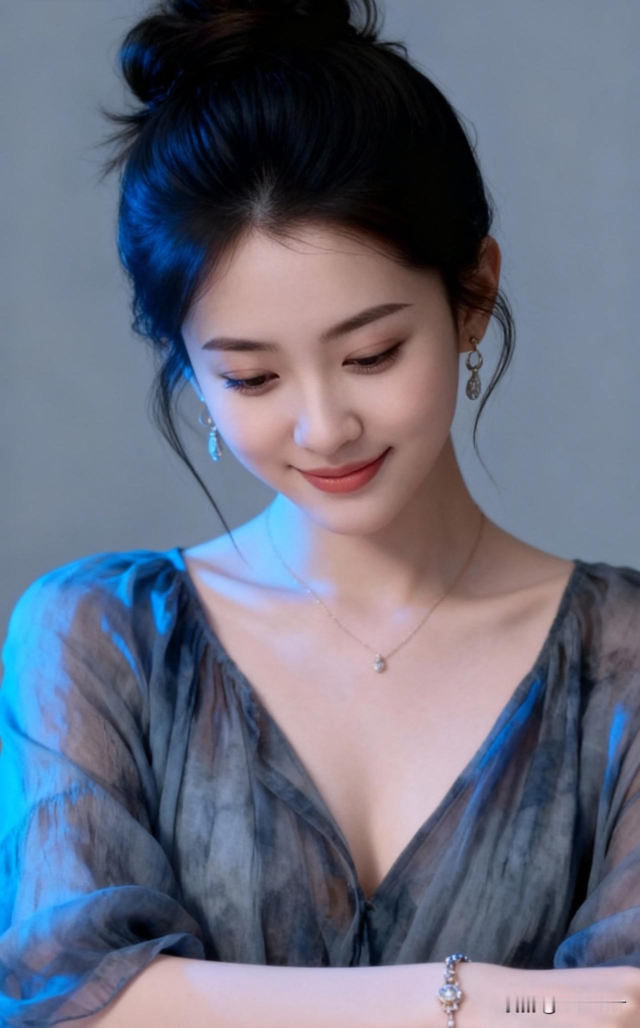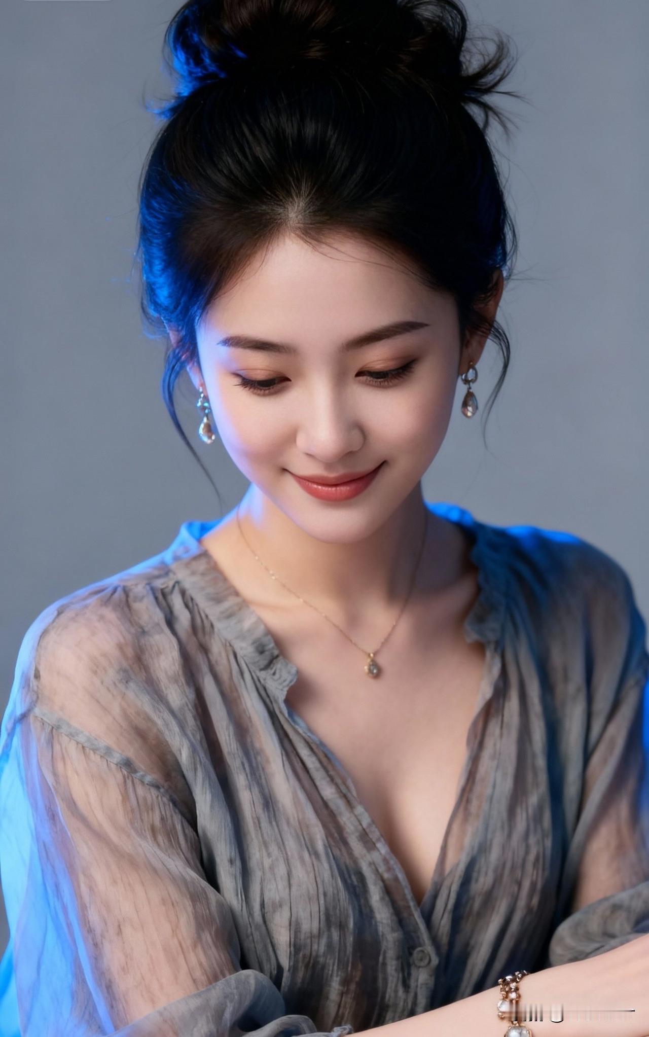 温柔甜美的少女,浅笑盈盈,散发着优雅的气质。