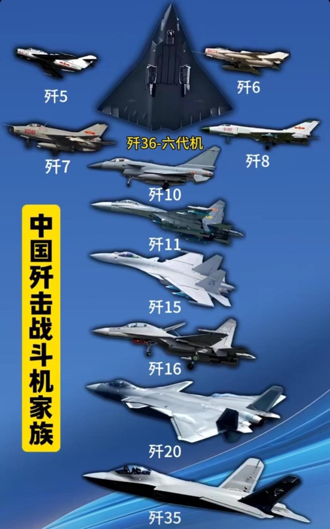 中国战机现在已达几代?与美俄相比是超越还是落后? 中国战机按国际通用五代划分法(已接轨美俄新五代标准),已发展至第五代,另有四代半过渡型号,且正预研第六代 。 五代划分与代表机型 - 第一代:高亚音速喷气机,机炮为主;代表:歼-5 。 ​ - 第二代:低超音速,简单雷达+近距弹;代表:歼-6 。 ​ - 第三代:2倍音速,高空高速,中距弹;代表:歼-7、歼-8 。 ​ - 第四代:高机动、涡扇、超视距、多用途;代表:歼-10、歼-11、歼-15、歼-16 。 ​ - 第五代:隐身、超巡、超机动、先进航电;代表:歼-20、歼-35 。 补充说明 - 四代半:歼-10C、歼-16等,航电/武器/数据链大幅升级,接近五代水平。 ​ - 划代演变:中国曾用四代划分,后为接轨国际改五代,歼-20由“四代”改称“五代”。